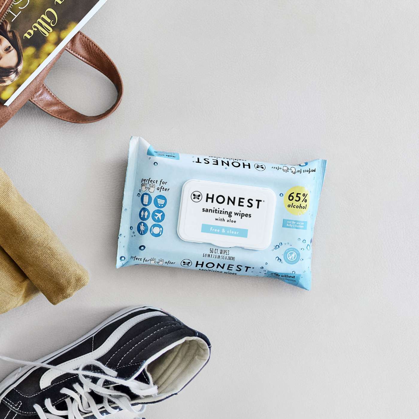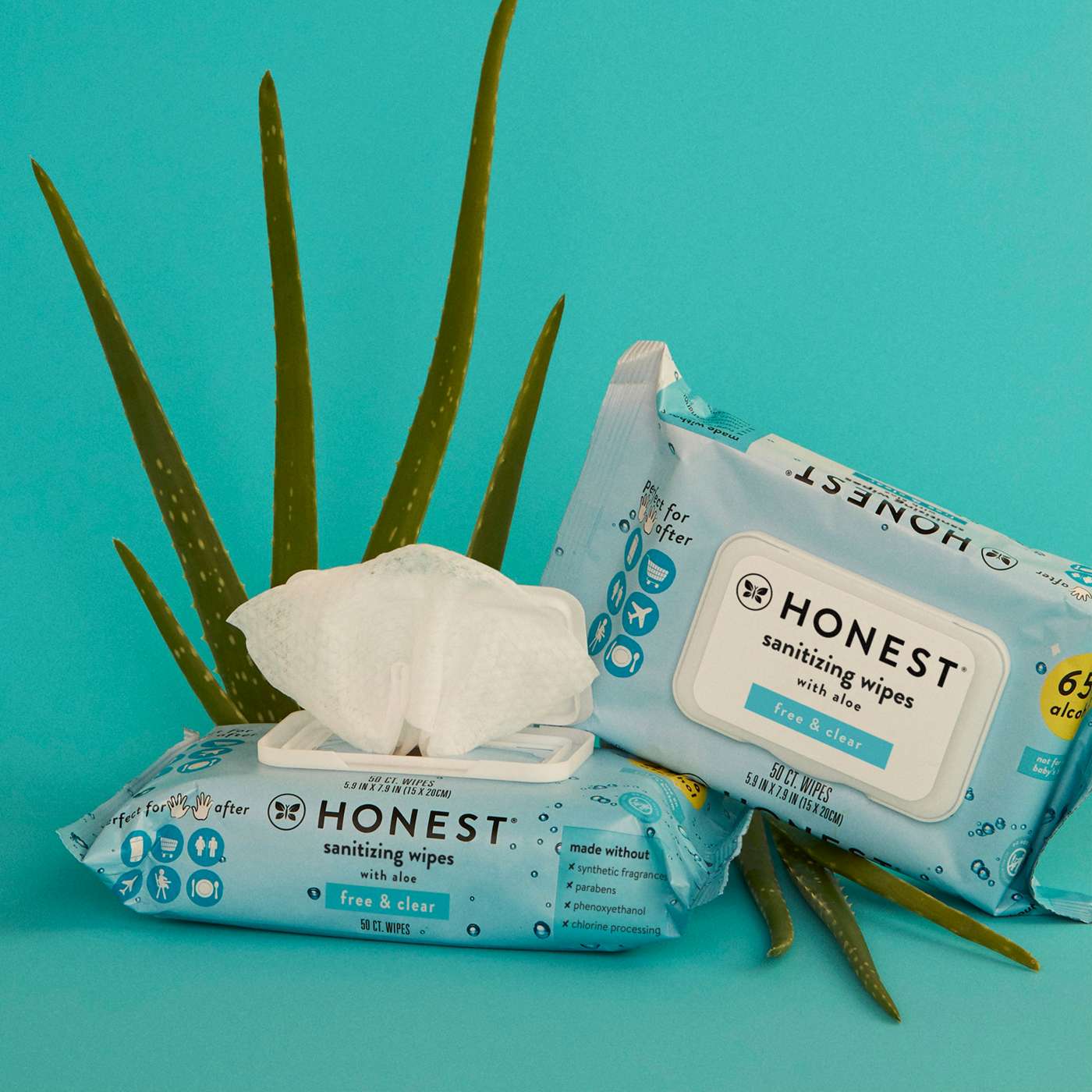 Keepin' it clean and free from germs, whether you're at the grocery store, on a plane or at the playground, is a priority! Honest makes it simple with these Sanitizing Wipes.Honest alcohol wipes sanitize with 65% ethyl alcohol and a touch of aloe. Effectively remove dirt and grime from your hands and help to keep your hands from getting dry. They're perfect for use on the go, especially when there's no soap and water around!