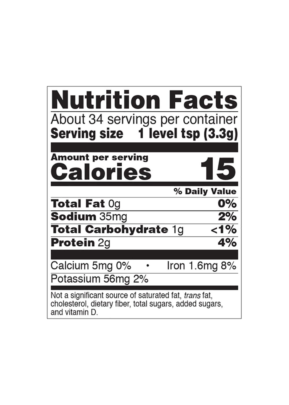 Serving Size1.00 level tsp- Amount Per ServingCalories15