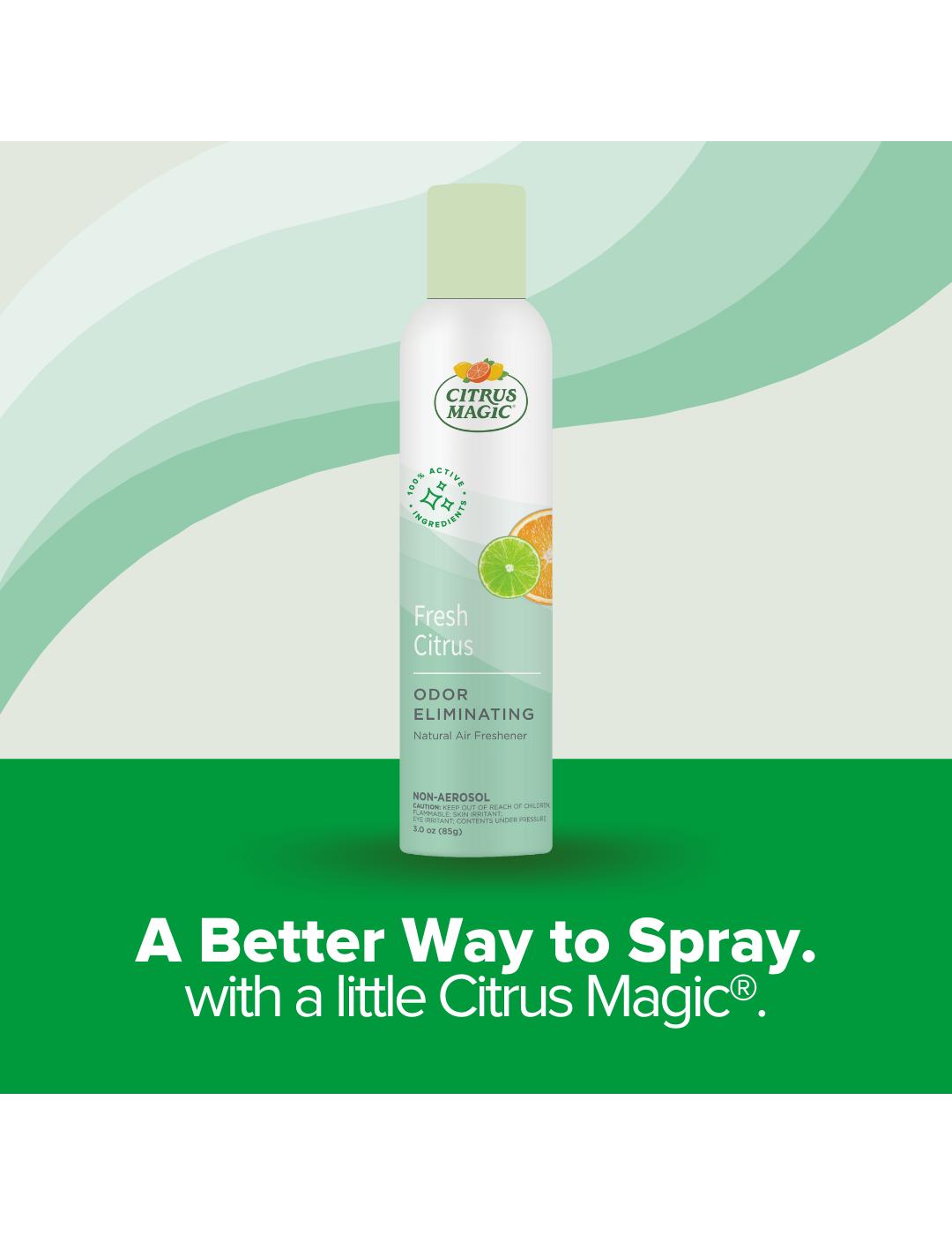 A juicy, straight-from-the-orchard medley of lemon, lime and grapefruit. Harness the power of nature with Citrus Magic Odor Eliminating Natural Air Fresheners. Spritz the natural, breath-of-fresh-air scents around your home, and rest easy knowing our products are safe. Our unique formula utilizes nature's strongest odor eliminators so that pungent odors aren't just covered up, they are eliminated. These sprays are non-aerosol, so there are no propellants, just 100% active ingredients. Instantly notice a cleaner and refreshing atmosphere in the spaces you love. EXPERIENCE THE MAGIC!