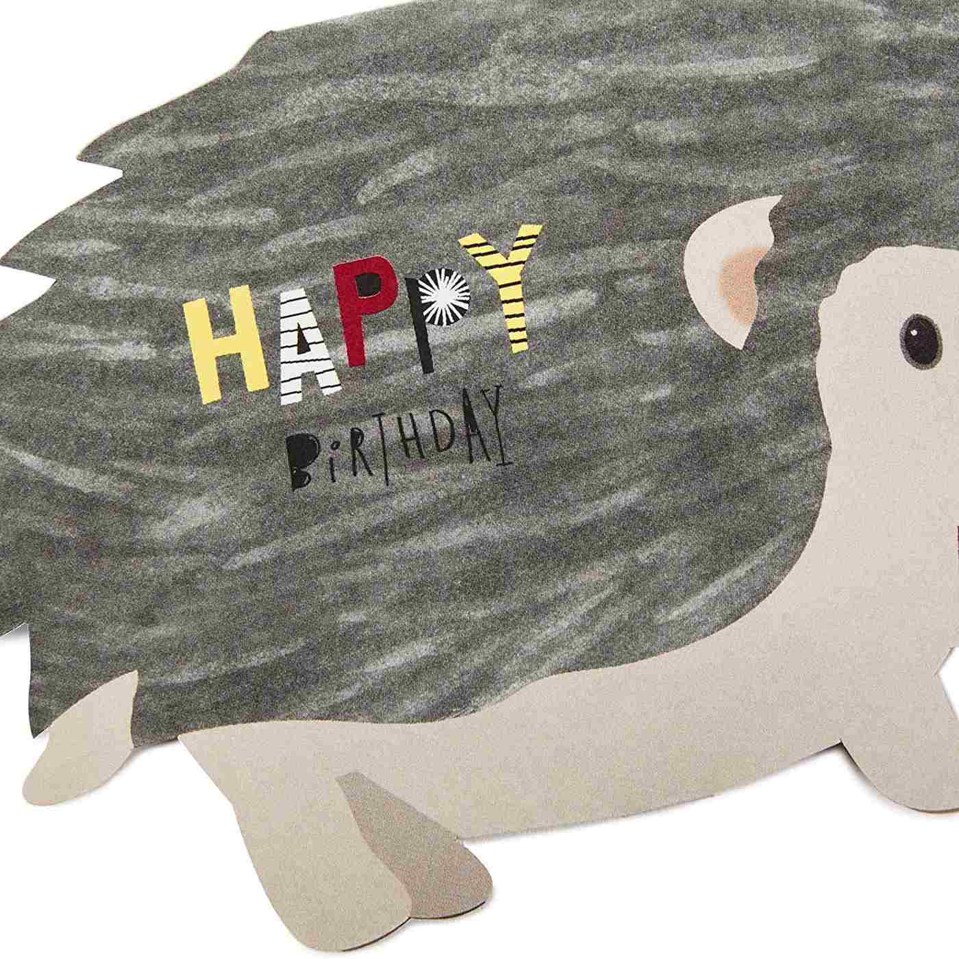 - Card arrives flat and features a cheerful hedgehog wearing a bow tie and "Happy birthday" lettering with space on the back for your personalized message. Flip card inside out for a 3D pop up surprise.
