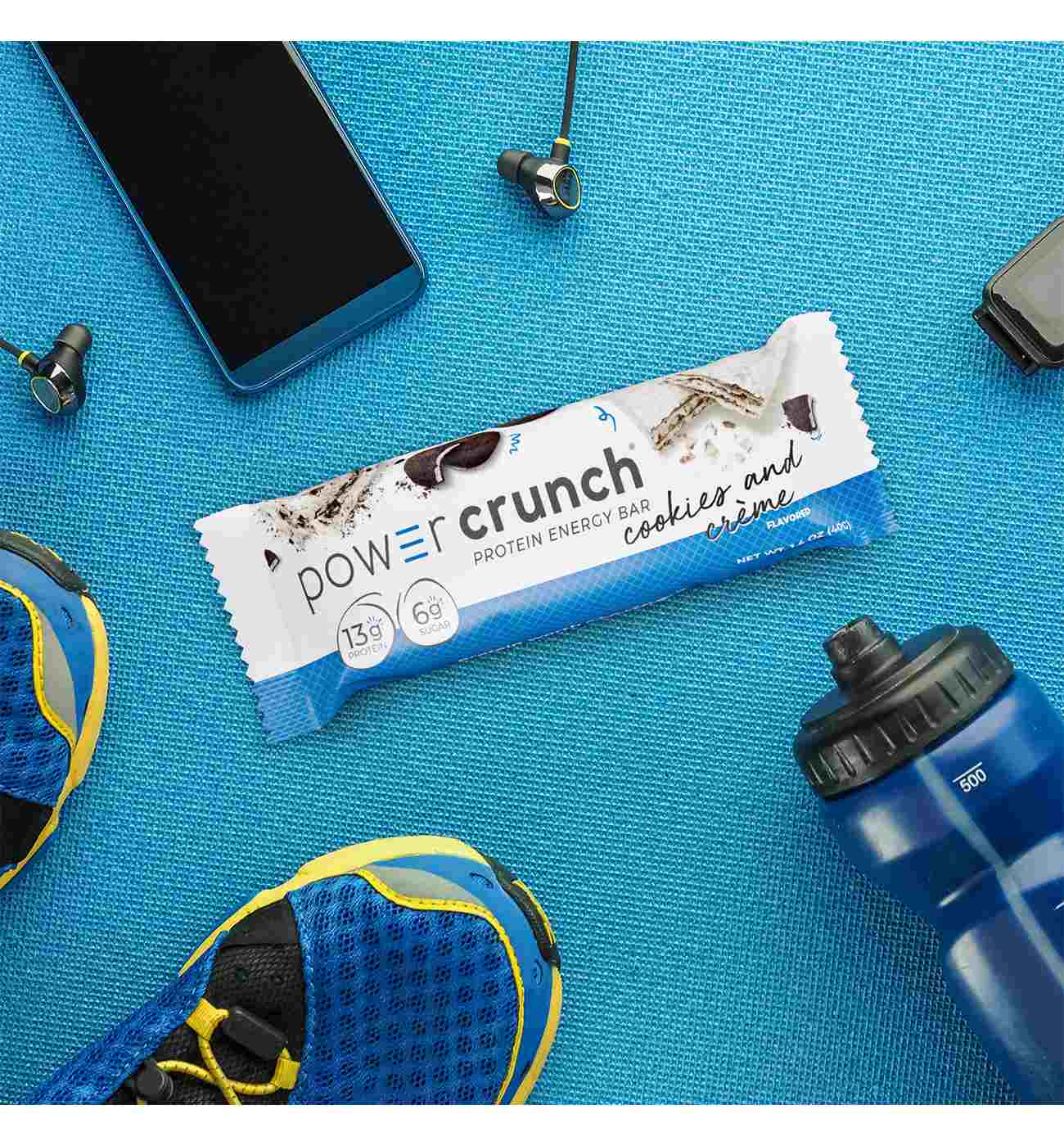 This Power Crunch Cookies & Crème Protein Bar offers classic vanilla flavor that's combined with a creamy, buttery cookie filling. With 13g of whey protein, no sugar alcohols and an irresistible crunch, it's protein worth craving.