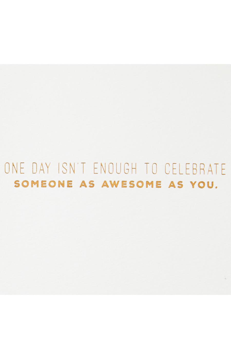 - Inside reads: "One day isn't enough to celebrate someone as awesome as you."
