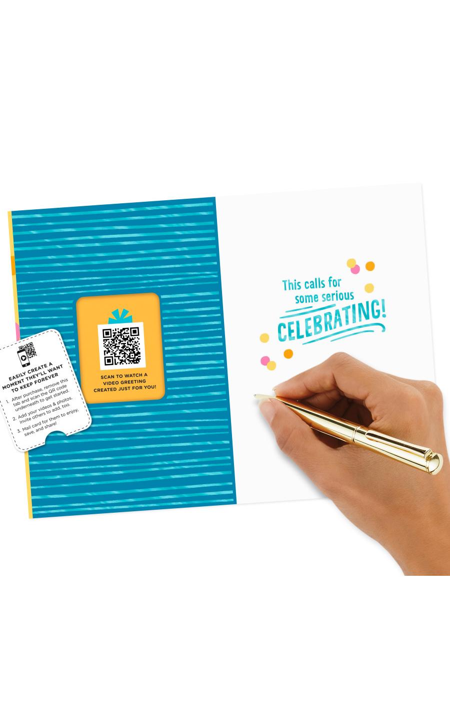 - Congratulate a friend on a promotion or wish a graduate well with a celebratory card containing a unique scan code for adding a personalized video greeting.