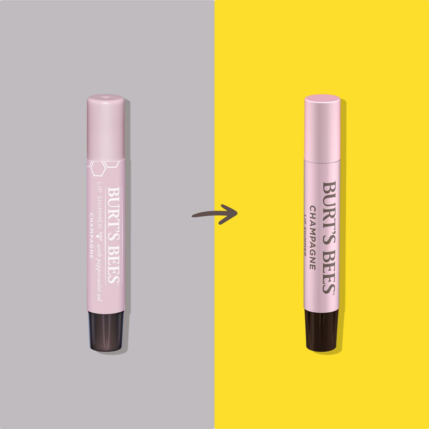 Burt's Bees Lip Shimmer Champagne provides cool, luminescent color; high impact, instant moisture; and refreshing peppermint flavor.• SHIMMER AND SHINE: Burt's Bees Lip Shimmer Champagne provides the perfect hint of luminescent color for shimmering, vibrant lips in a cool shade (Packaging May Vary)• HIGH IMPACT, INSTANT LIP MOISTURE: Burt's Bees Lip Shimmer Champagne nourishes lips with shea and cocoa butters to deliver instant moisture and leave them feeling softer• SOFT, PINK CHAMPAGNE COLOR: The luminescent shade of Burt's Bees Lip Shimmer Champagne adds shine and enriches lip color with a flattering, soft pink hue• REFRESHING PEPPERMINT: Made with peppermint oil, Lip Shimmer Champagne provides a delightful hint of refreshing peppermint flavor with every delicious swipe• NATURAL ORIGIN: Made without parabens, phthalates, petrolatum, or SLS, Lip Shimmer Champagne is 100% natural origin, formulated with ingredients from nature and comes in a recyclable carton