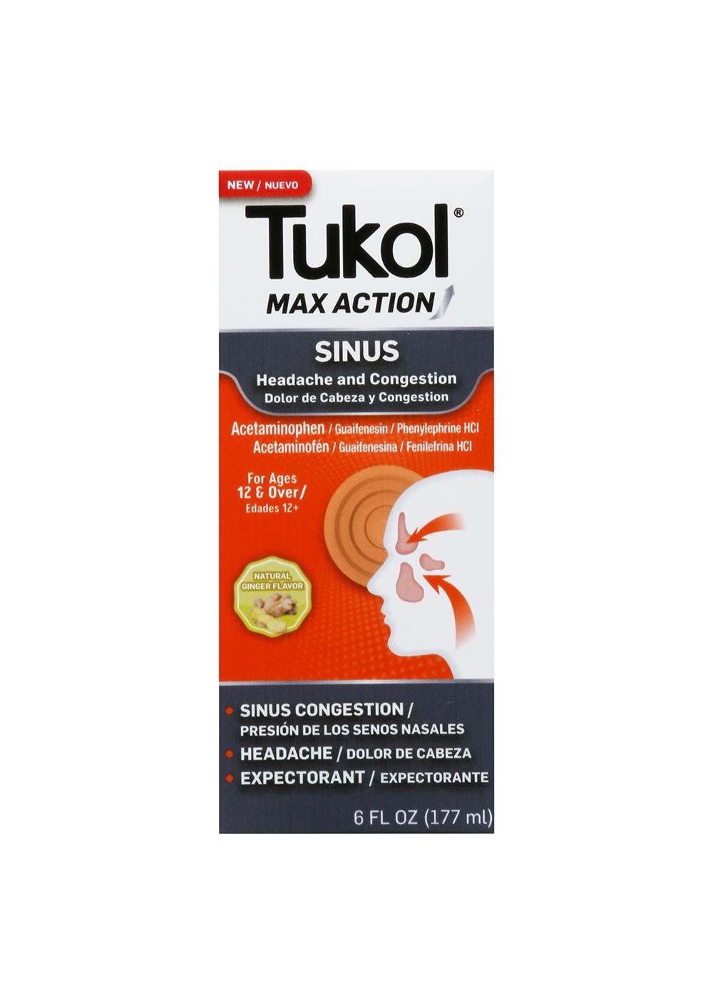 Tukol Max Action Sinus is a daytime liquid formula designed to relieve symptoms of sinus congestion, pressure, and allergies. Flavored with natural ginger, this medicine contains active ingredients like guaifenesin to help clear sinus passages. It provides non-drowsy relief, making it a suitable choice for managing discomfort during the day.• Liquid formula for sinus and congestion relief• Non-drowsy for daytime use• Targets symptoms of allergies and sinus pressure• Contains Guaifenesin and Phenylephrine Hydrochloride• Formulated with a natural ginger flavor