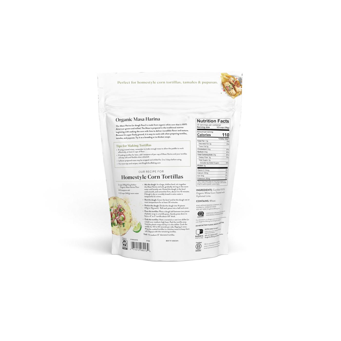 Made from organic white corn that's 100% American-grown and milled, King Arthur Masa Harina Flour is great for making soft, homestyle corn tortillas, tamales, empanadas, and pupusas. To deliver the most incredible flavor and texture, they followed the traditional nixtamalization process, where the corn is first dried and then soaked with lime water before being finely ground to make it exceptionally easy to work with. The convenient resealable bag makes it easy to portion just the right amount and save the rest for later.