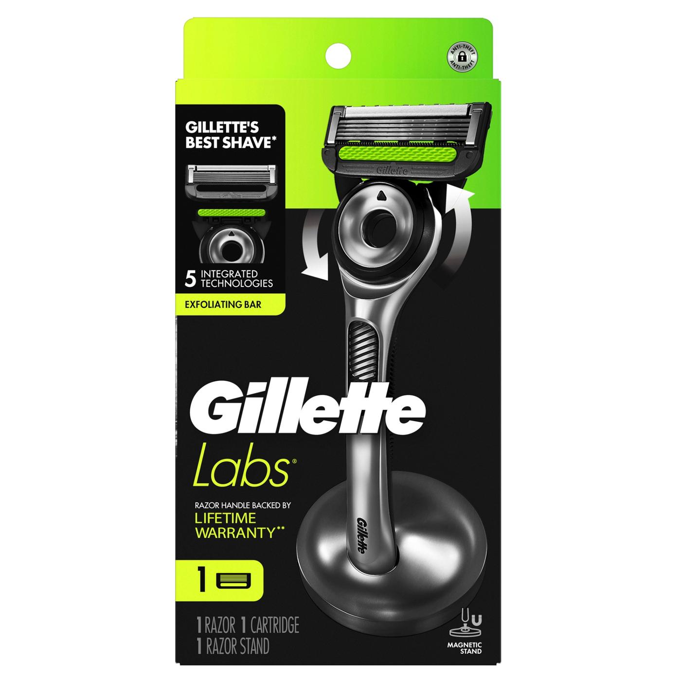 GilletteLabs with Exfoliating Bar by Gillette is the world's first razor with exfoliating technology built into the handle, which releases trapped hairs before the blades pass for unbeatable smoothness in one stroke. The 2D FlexDisc technology contours to your face to ensure comfort and contact with every stroke. Featuring 5 of Gillette's best blades* (*blades also available on other Gillette products), this shaver is designed for a quick and easy shave. It also comes with a magnetic stand. Use with GilletteLabs razor blade refills which are also compatible with the Gillette Heated Razor. The razor handle is backed by a Lifetime Warranty (visit gillette.com/warranty for more info.)