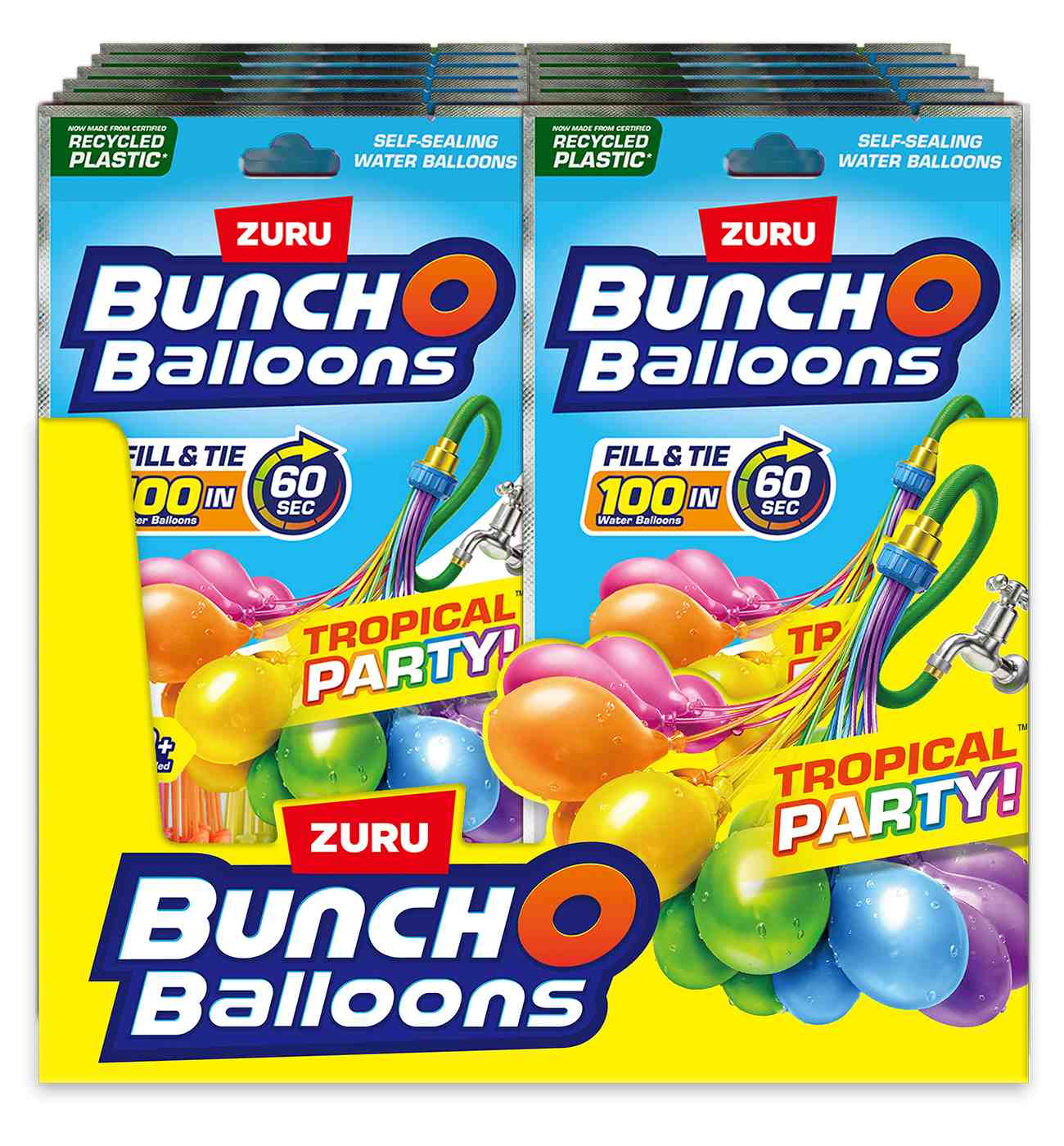 Get ready to party with Bunch O' Balloons Tropical Party Water Balloons! Fill and tie 100 water tropical party balloons in less than 60 seconds with these self tying water balloons!