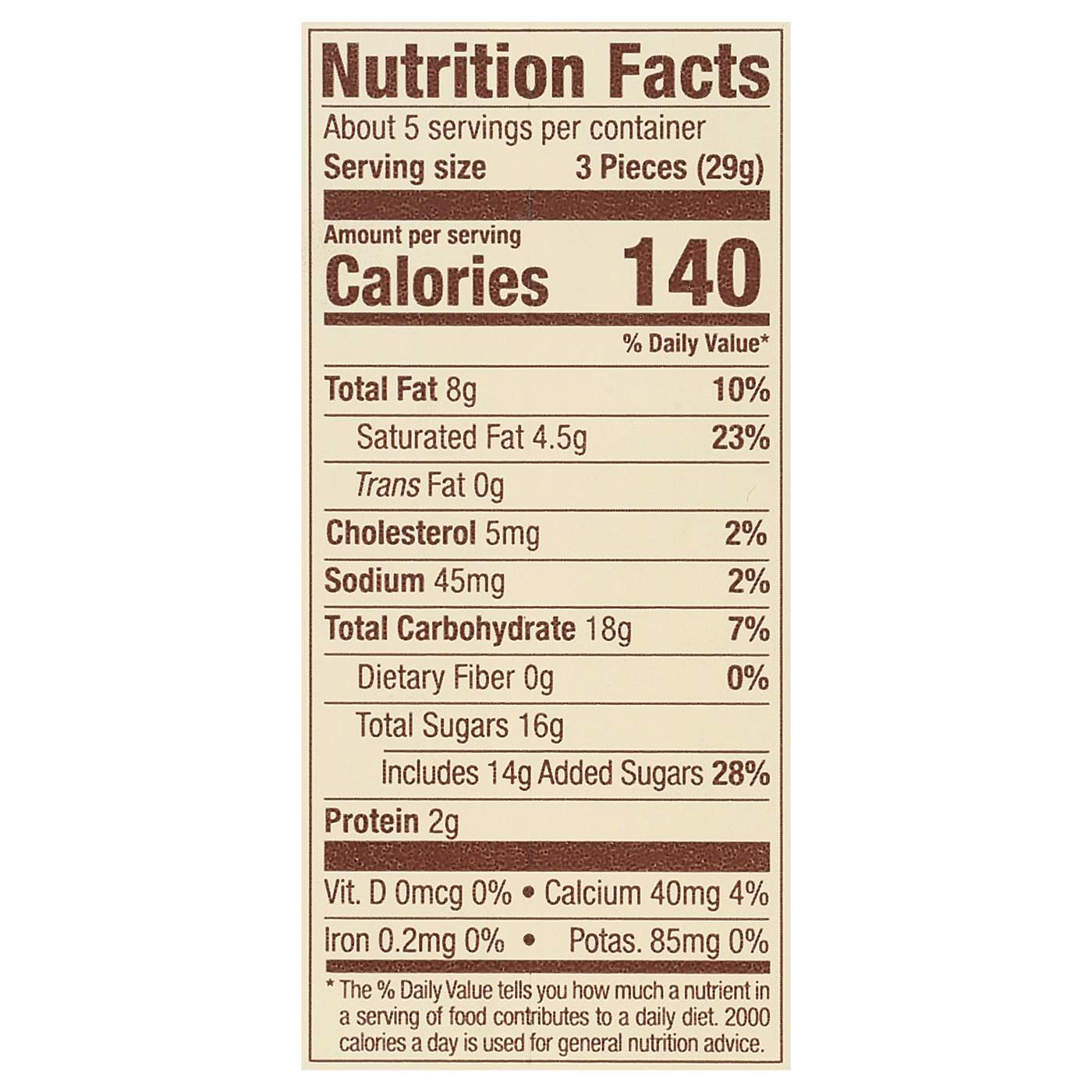 Serving Size3.00 pieces- Amount Per ServingCalories140