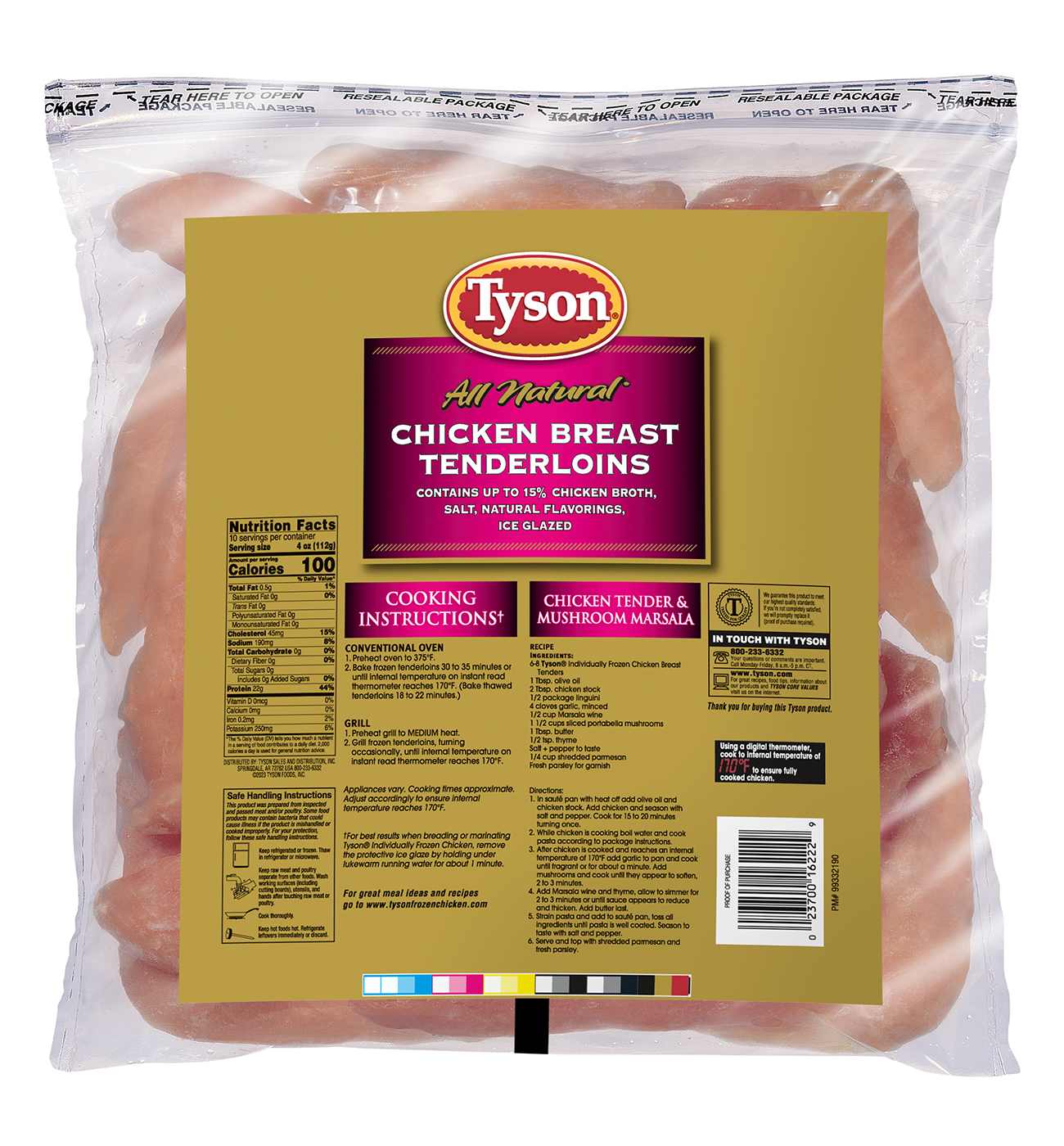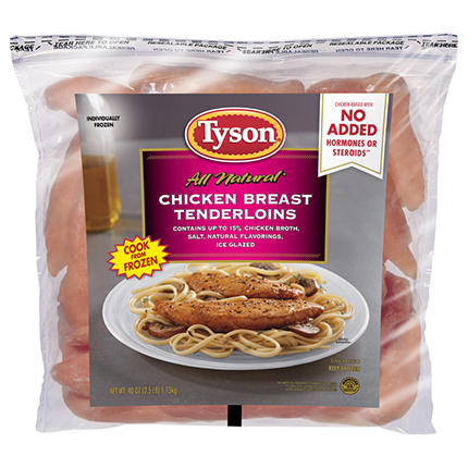 There's nothing like cooking from scratch, especially when you start with Tyson Individually Frozen Boneless Skinless Chicken Breast Tenderloins. These all-natural* chicken is juicy and tender with 22 grams of protein and 0 grams of trans fat per serving. Perfect for grilling and frying, simply cook and serve our chicken breast tenderloins with Teriyaki sauce for a quick and delicious weeknight dinner. Includes one 2.5 lb package of individually frozen chicken. Everything seems to turn out a whole lot better when you just keep it simple. No nonsense. Just stick to the good stuff. The 100% real stuff that makes life, and chicken, great. Keep it real. Keep it Tyson.