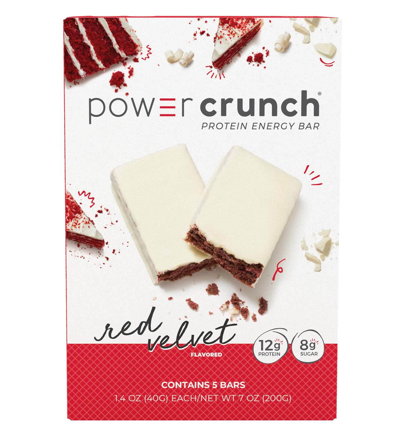 Decadent and delicious. The rich flavors of cream cheese and red cocoa combination make our Power Crunch Red Velvet bar a truly classic, indulgent and protein-packed treat. This delicious cream filled wafer bar is packed with 12g of protein, only 8 grams of sugar and no sugar alcohols. Power Crunch is the original wafer cream protein energy bar with an irresistible crunch.