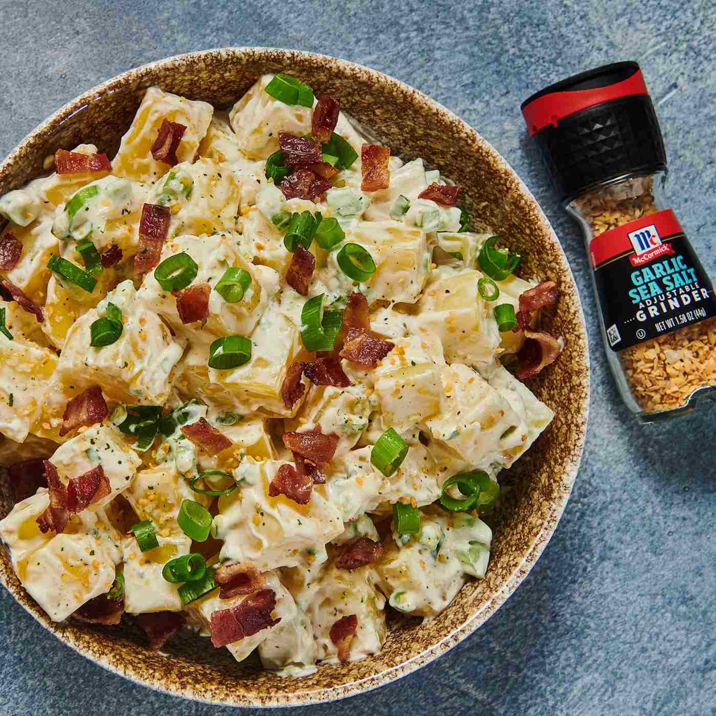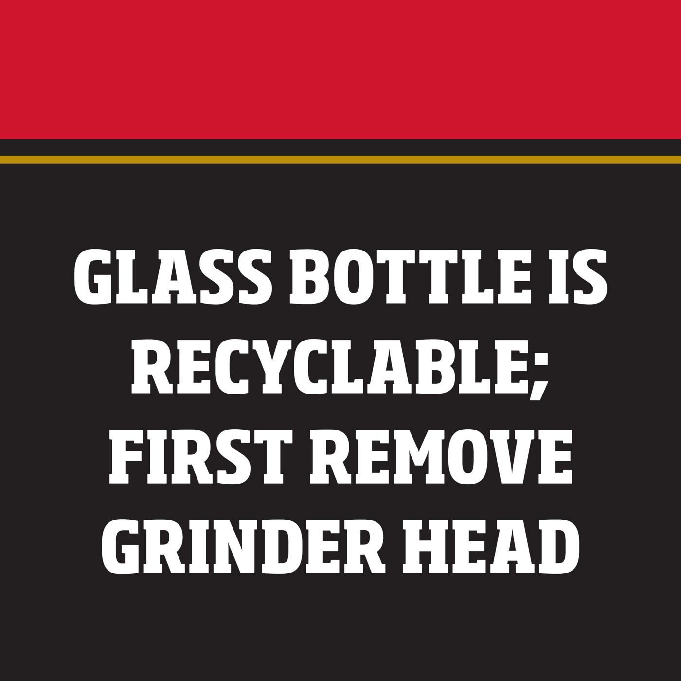 McCormick Garlic Sea Salt Grinder is a savory blend of garlic and sea salt flecked with parsley. With a built-in adjustable grinder, you can twist it on most anything, including pizza, chicken, beef, salmon, pasta or veggies. Naturally harvested from the Mediterranean, sea salt crystals are coarser than table salt, with a higher concentration of minerals. Adjust the grinder for perfectly ground garlic salt to suit your taste. Use the coarse salt as a bold pork or steak seasoning. With a twist, adjust to fine salt for eggs, potatoes or soups. Try in place of garlic powder, onion salt, onion powder or seasoned salt to liven up your meals. Keep salt and pepper grinders in the kitchen and at the table for freshly ground flavor anytime.- A savory blend of garlic and sea salt flecked with parsley- Sea salt naturally harvested from the Mediterranean- Adjustable grinder conveniently offers coarse, medium or fine grind; not refillable- McCormick Seasoning Grinder glass bottles are recyclable; remove grinder head first- To use: remove cap, adjust grinder to desired grind, turn upside down and twist- Use coarse grind for bold texture when seasoning meats- Use finer grind to sprinkle over eggs, vegetables, fries, rice or soups