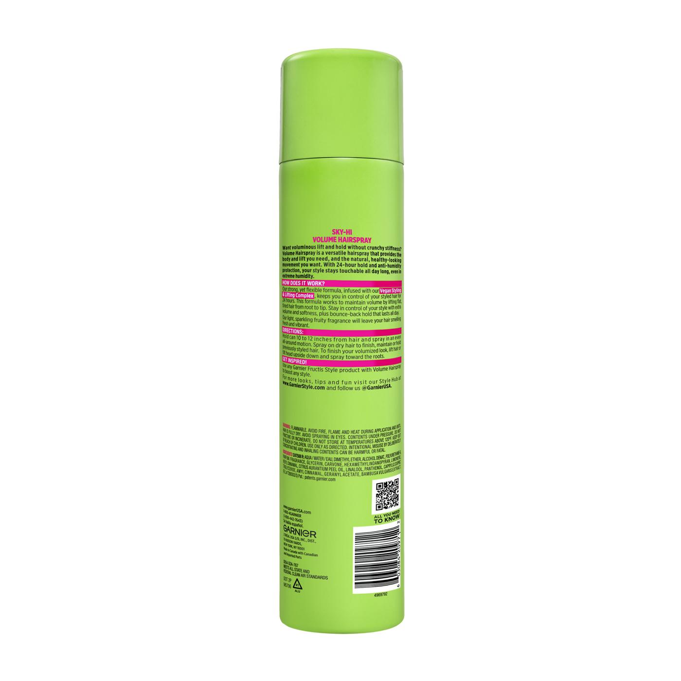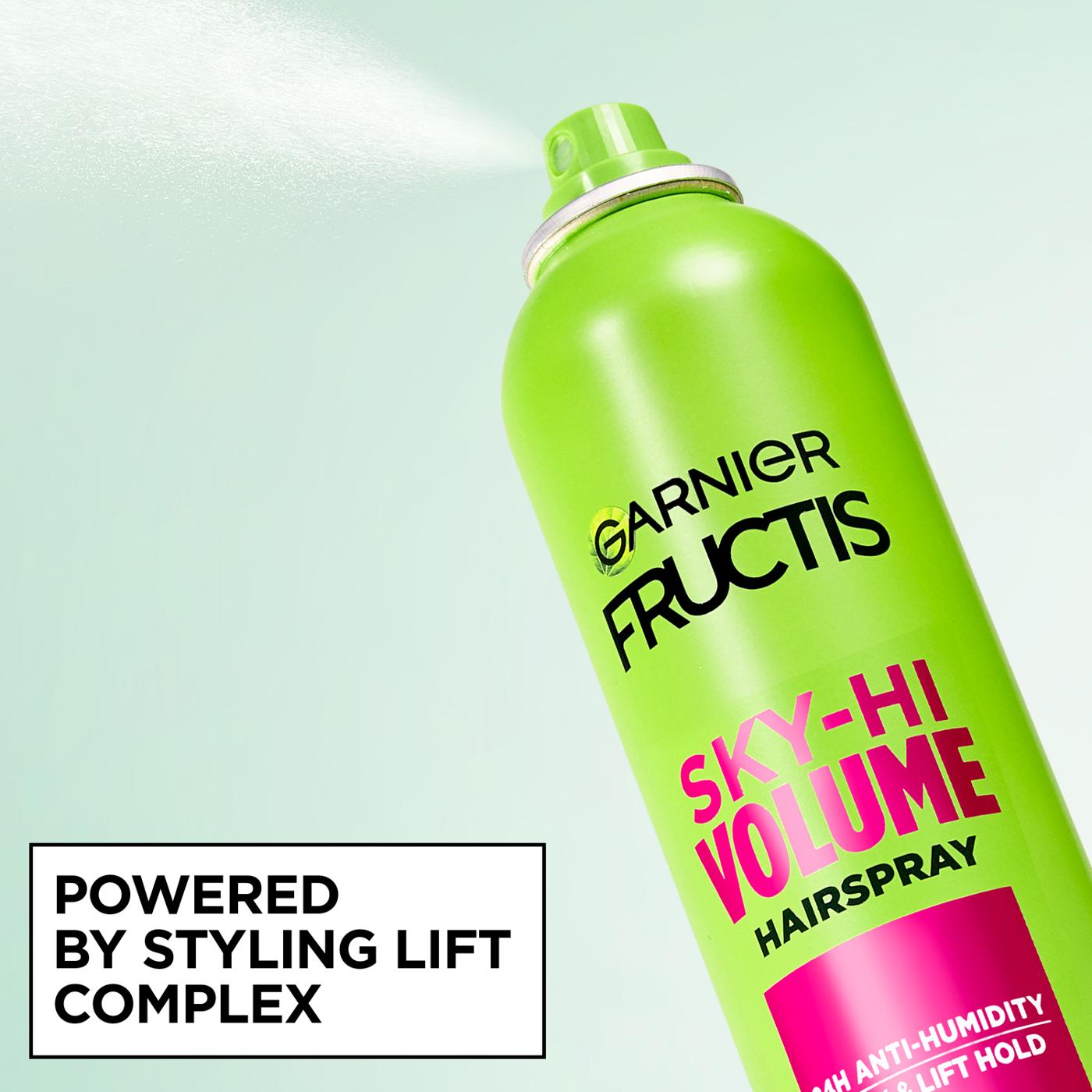 Get a boost of volume for your hair with Garnier Fructis Style Volume Hair Spray. Housed in a vibrant green can, this hairspray provides an extra strong, level 4 hold for a fuller look that lasts. This product is designed to add volume while also addressing concerns of hair damage.• Provides an extra strong, level 4 hold for lasting style• Volumizing formula helps create a fuller look• Formulated to address concerns related to hair damage