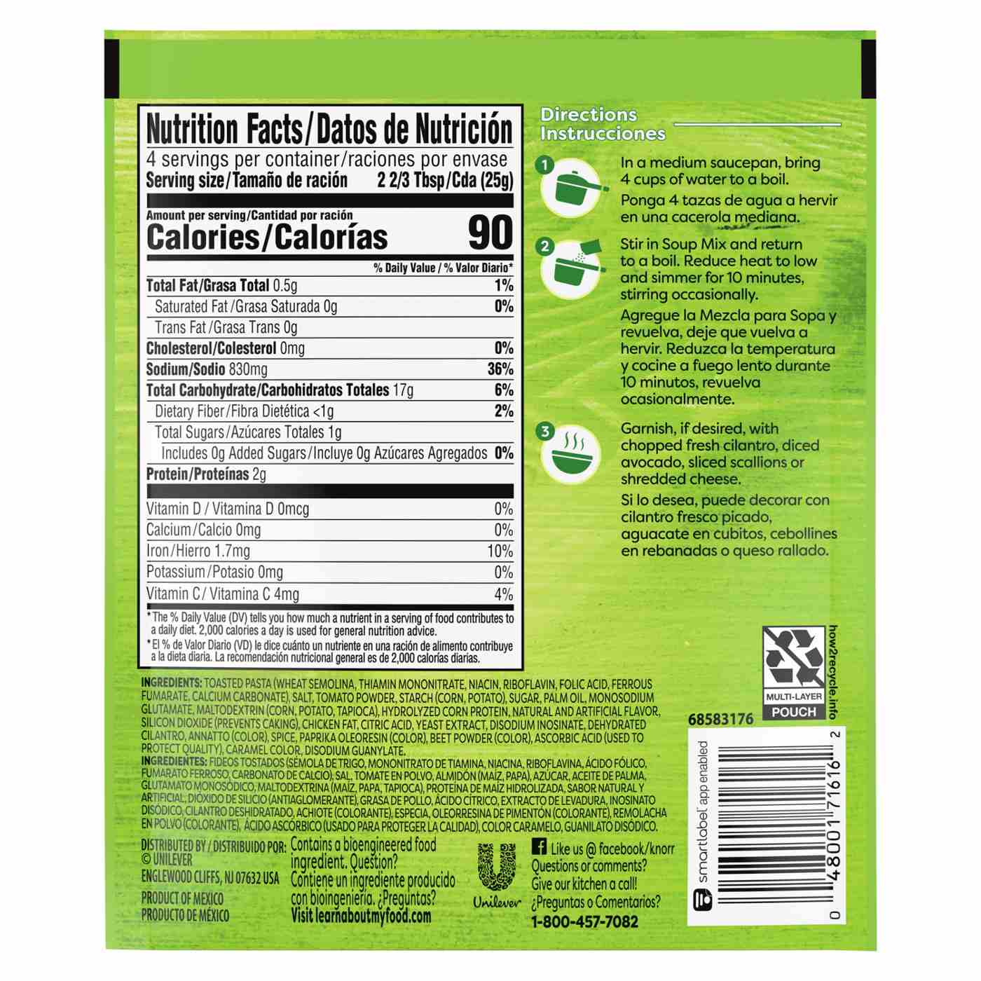 Knorr Sopa de Fideo/ Tomato Pasta Soup is a quick and easy dry soup mix that you can enjoy on its own or as a noodle soup base for a hearty main course. Served as a starter or light meal, it's a warming bowl of soup loaded with sweet tomatoes, herbs, spices and thin but satisfying noodles. Looking for a simple dinner your whole family will love? Add chicken, beef or another protein for a more filling meal. For an easy and quick to prepare recipe, simply following these directions. Bring 4 cups of water to a boil, then stir in tomato soup mix and return to a boil. Reduce heat to low and simmer for 10 minutes, stirring occasionally. Garnish, if desired, with chopped fresh cilantro, diced avocado, sliced scallions or shredded cheese. Each individual package makes 4 servings. Knorr Sopas are available in a variety of flavors and shapes including Alphabet, Stars, Chicken Noodle and Elbows, so you can be sure to find the Latin flavors your family will love. We believe that good food matters, and everyday meals can be just as magical as special occasions. Knorr products owe their taste and flavors to the culinary skills and passion of our chefs. We source high-quality ingredients to create delicious side dishes, bouillons, sauces, gravies, soups, and seasonings enjoyed by families everywhere.