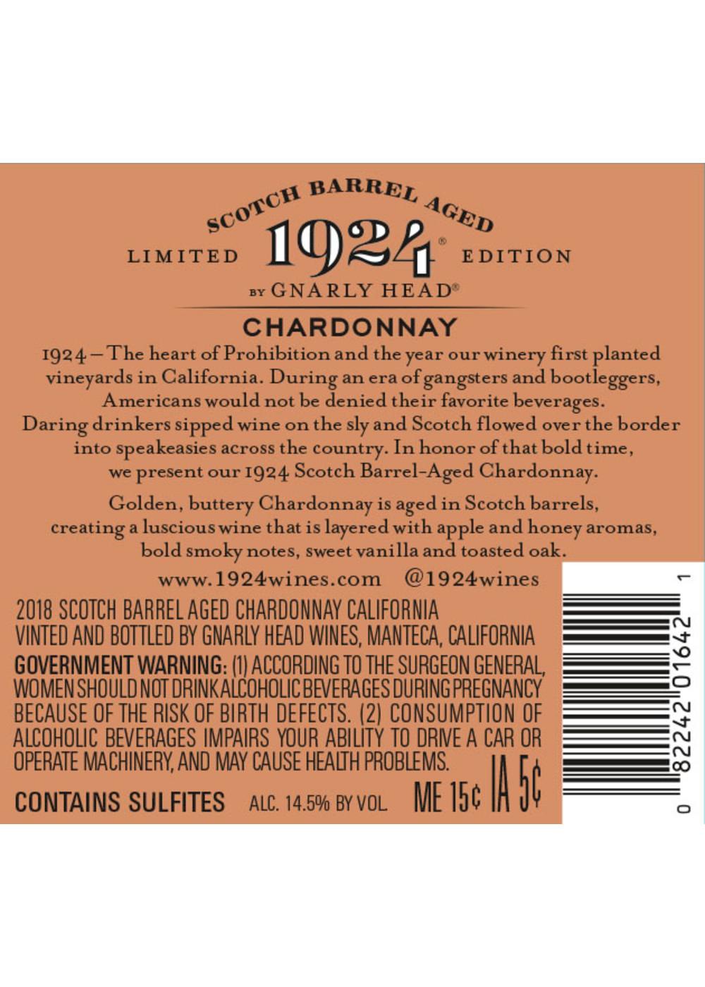 1924 Scotch Barrel Aged Chardonnay California Red Wine