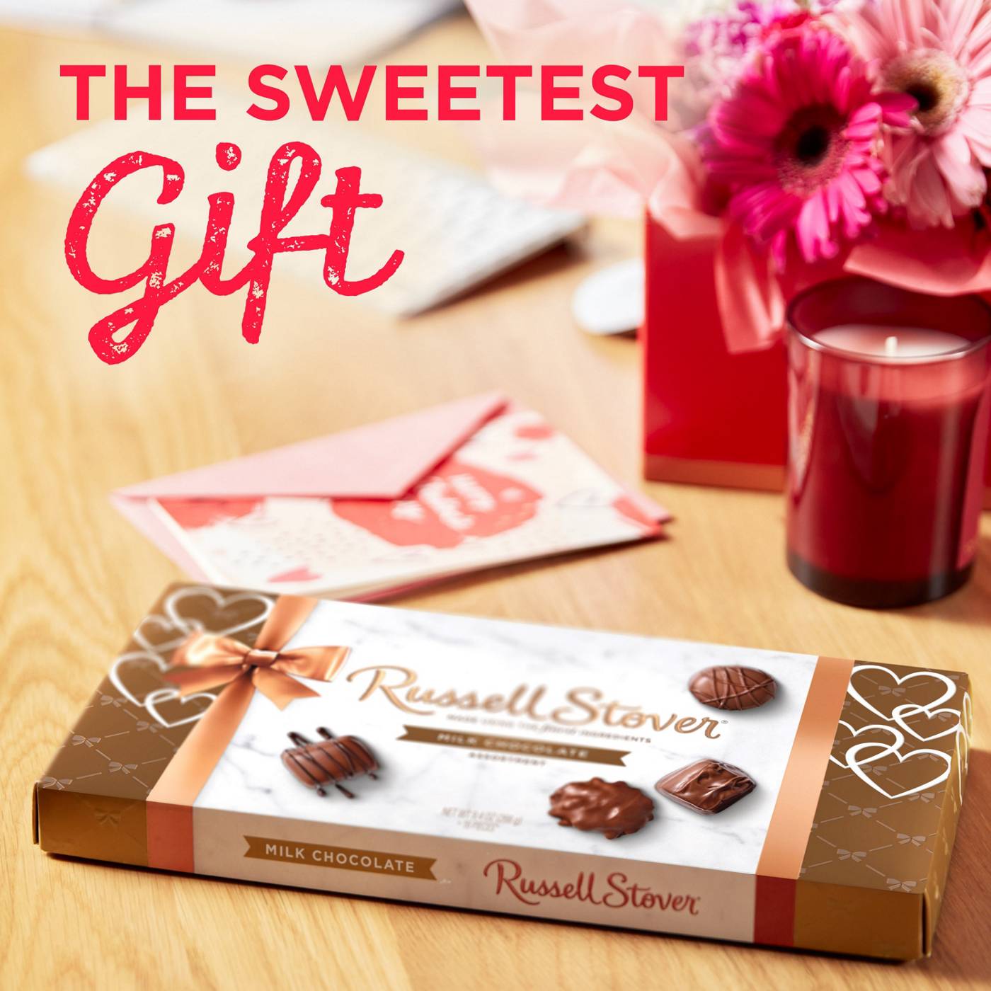 RUSSELL STOVER Valentine's Day Milk Chocolate Assortment Gift Box, 9.4 oz., is a 16 piece assortment of 8 milk chocolate favorites: milk chocolate caramel, milk chocolate pecan delight, milk chocolate truffle, milk chocolate strawberry creme, milk chocolate covered peanuts, milk chocolate nut caramel and milk chocolate toffee. This creamy milk chocolate assortment is the perfect way to show you care! Share the love with RUSSELL STOVER - an American-made classic since 1923. Made from our hearts with tradition and passion, we are proud to be part of your sweet traditions and everyday indulgences.