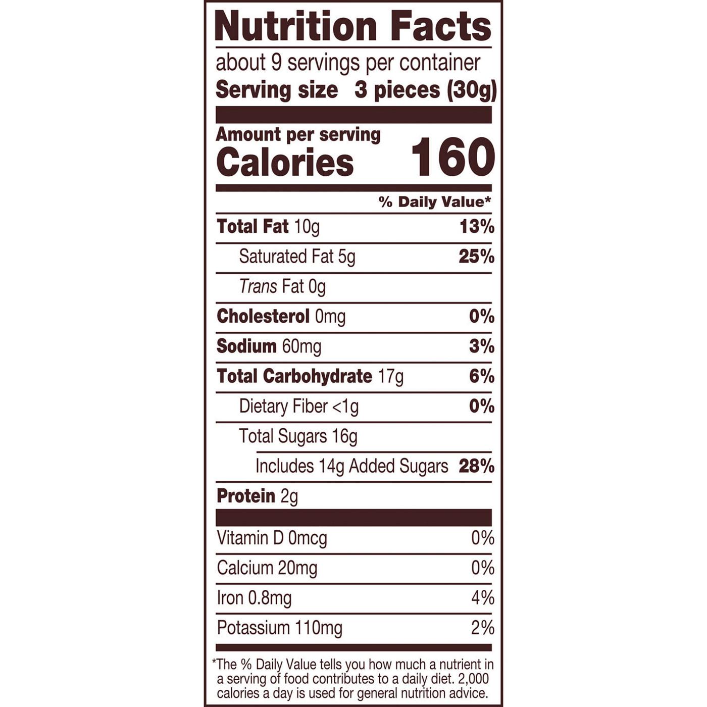Sugar, Vegetable Oil (Palm Oil, Shea Oil, Sunflower Oil, Palm Kernel Oil, &/Or Safflower Oil), Peanuts, Lactose (Milk), Reduced Protein Whey (Milk), Chocolate, Dextrose, Skim Milk, Contains 2% Or Less Of: Cocoa Processed With Alkali, Cocoa, Hydrogenated Vegetable Oil (Palm Kernel Oil, Palm Oil), Salt, Lecithin (Soy), Vanillin (Artificial Flavor), Tbhq & Citric Acid (To Maintain Freshness).Allergens and safety warnings
