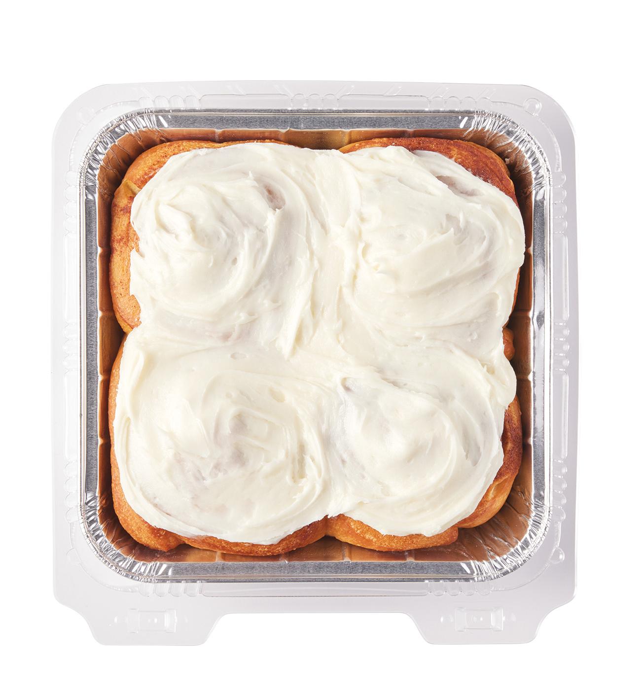 Thickly frosted with cream cheese icing, these cinnamon rolls from our H-E-B Bakery are a delicious breakfast or dessert idea. Soft and moist with an irresistible cinnamon filling, they're complemented by the richness of cream cheese on top. Pick up this 4-pack and enjoy every scrumptious bite.