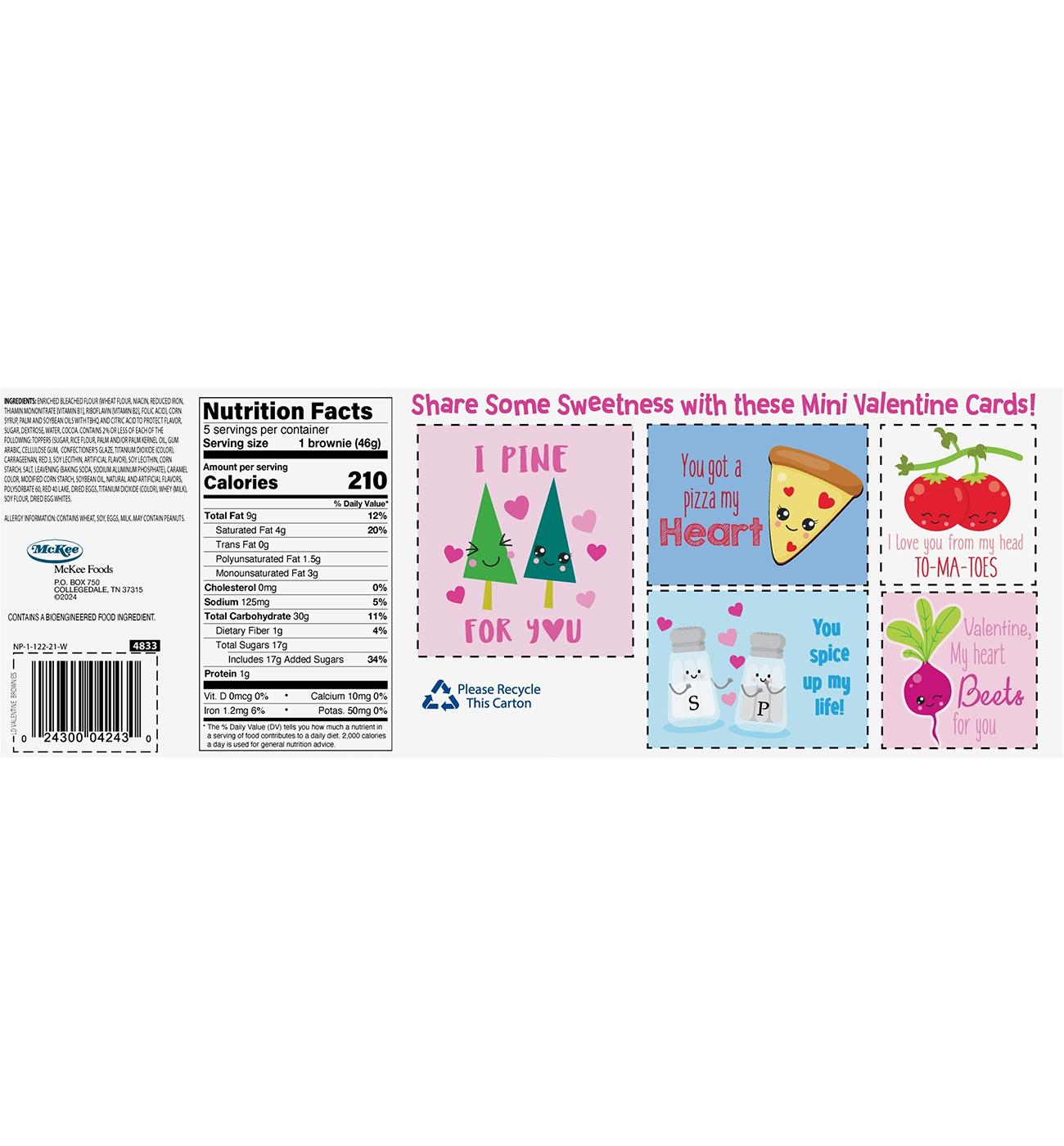 From Little Debbie, these heart-shaped, chewy fudge brownies are covered with red frosting and topped with heart-shaped sprinkles. Plus, they're individually wrapped for easy sharing.