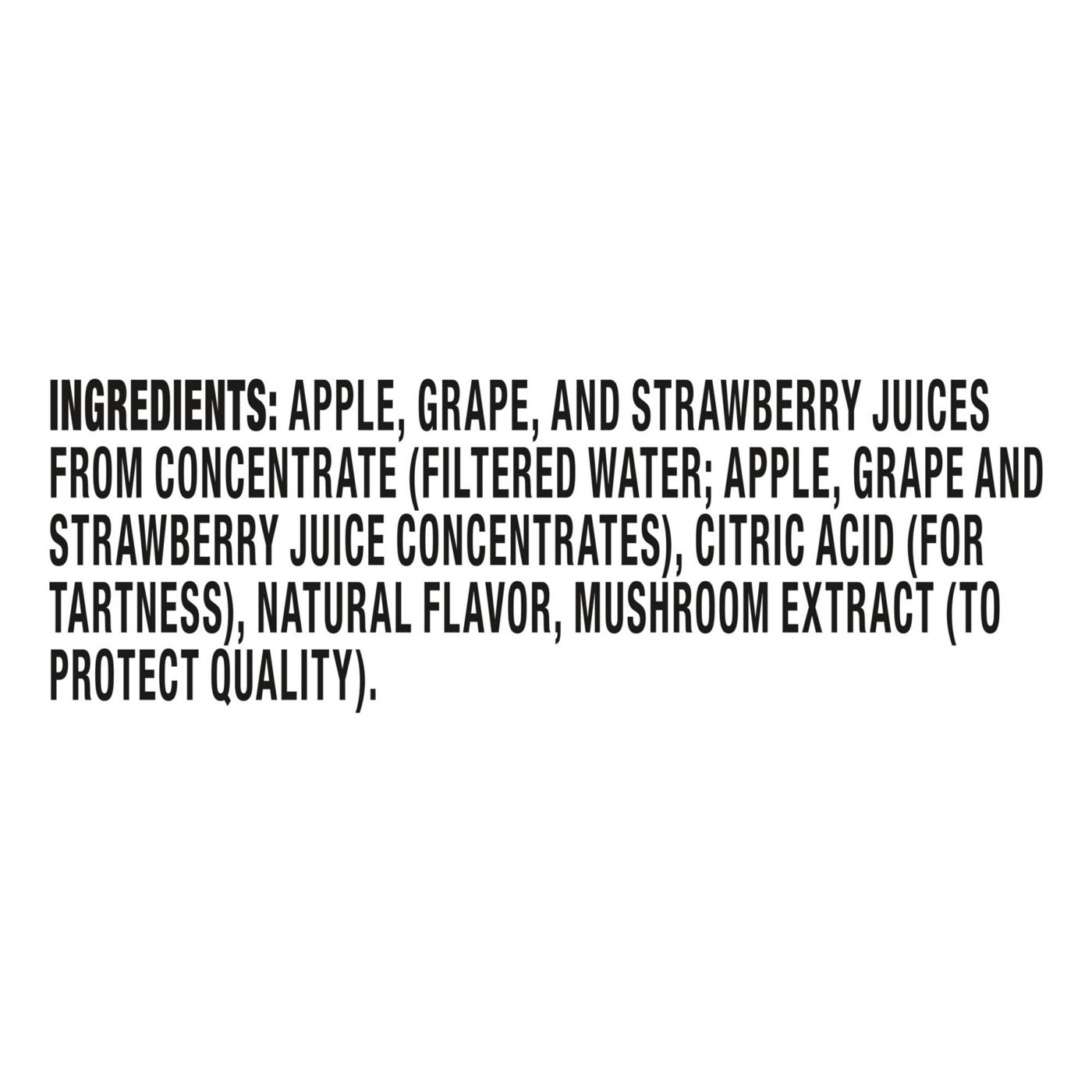 Apple, Grape, And Strawberry Juices From Concentrate (Filtered Water; Apple, Grape, And Strawberry Juice Concentrates), Citric Acid (For Tartness), Natural Flavor.Allergens and safety warnings