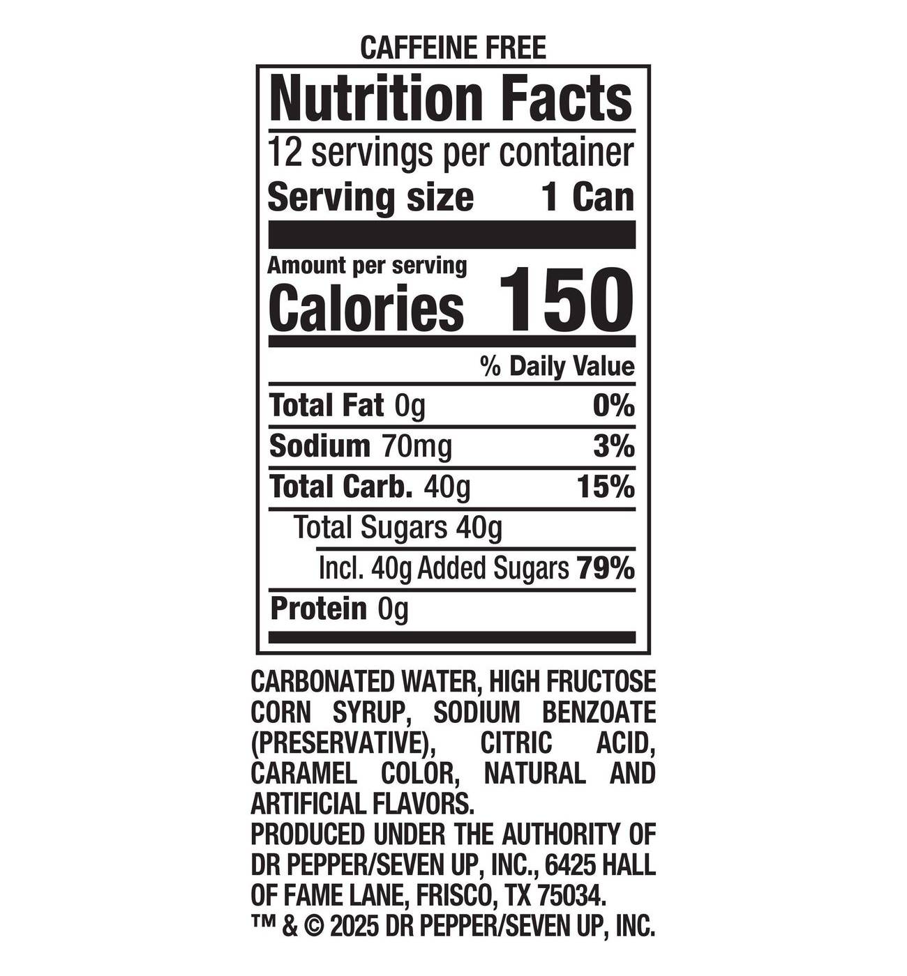 Carbonated Water, High Fructose Corn Syrup, Sodium Benzoate (Preservative), Citric Acid, Caramel Color, Natural and Artificial Flavors.