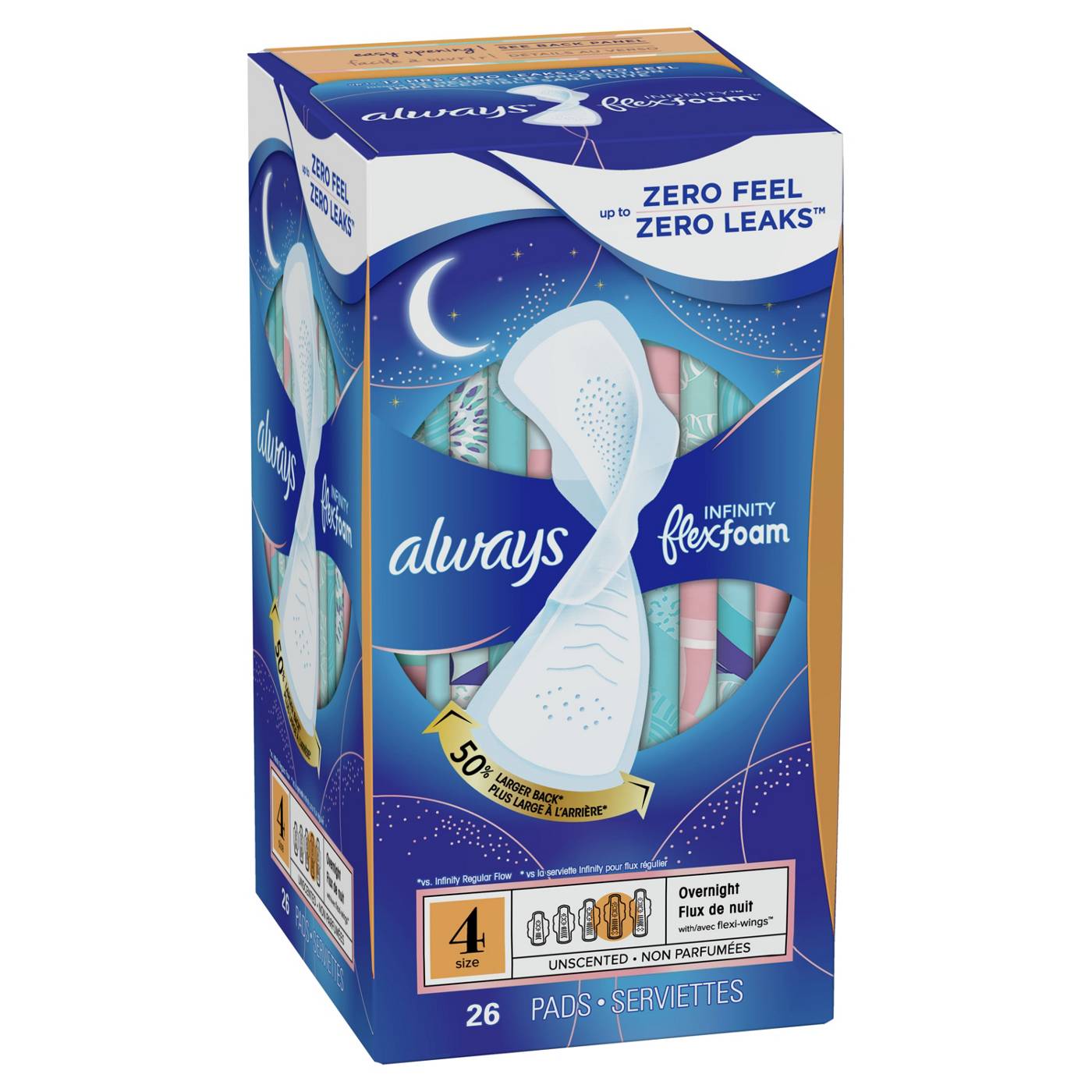 Always Infinity FlexFoam Pads Overnight Absorbency, with Wings Unscented Size 4