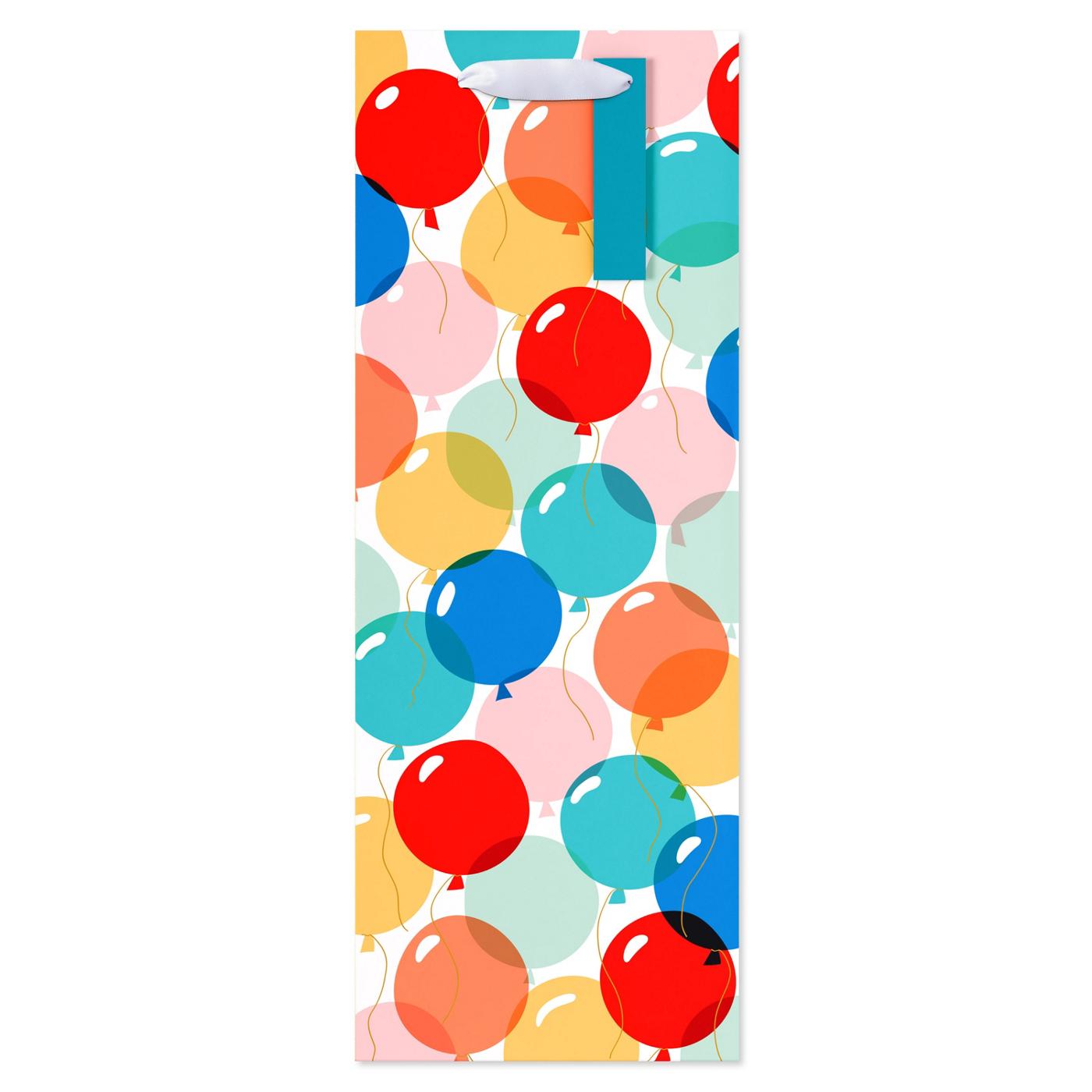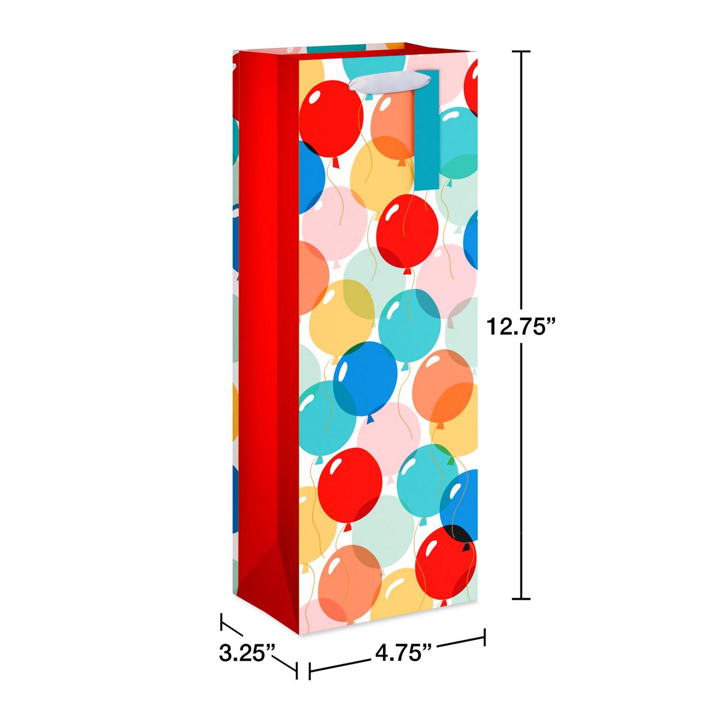 Make your gift even more cheers-worthy with this fun and festive beverage bag! The gift bag features balloons and includes satin ribbon handles as well as a gift tag. The sturdy bag is a great way to gift a bottle of wine or liquor or other drinks for a birthday or any special occasion. Pair with coordinating tissue paper and ribbon (sold separately) to add some extra flair.