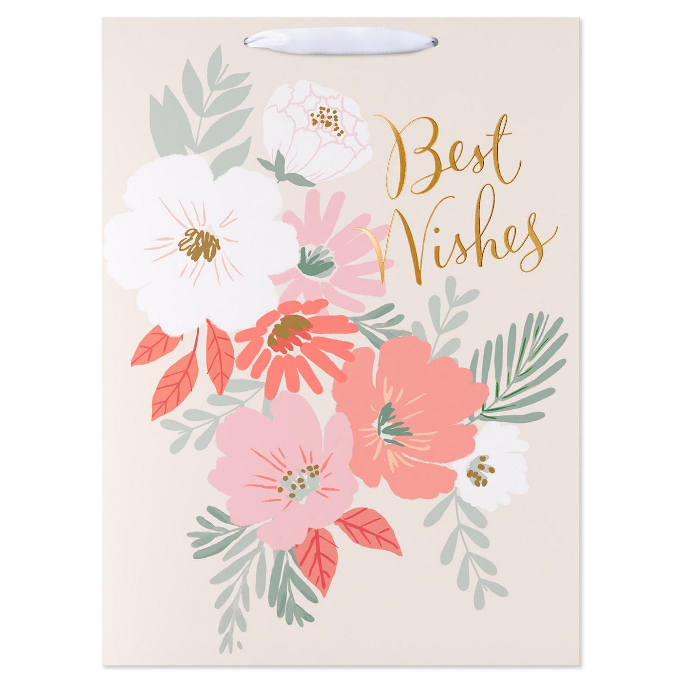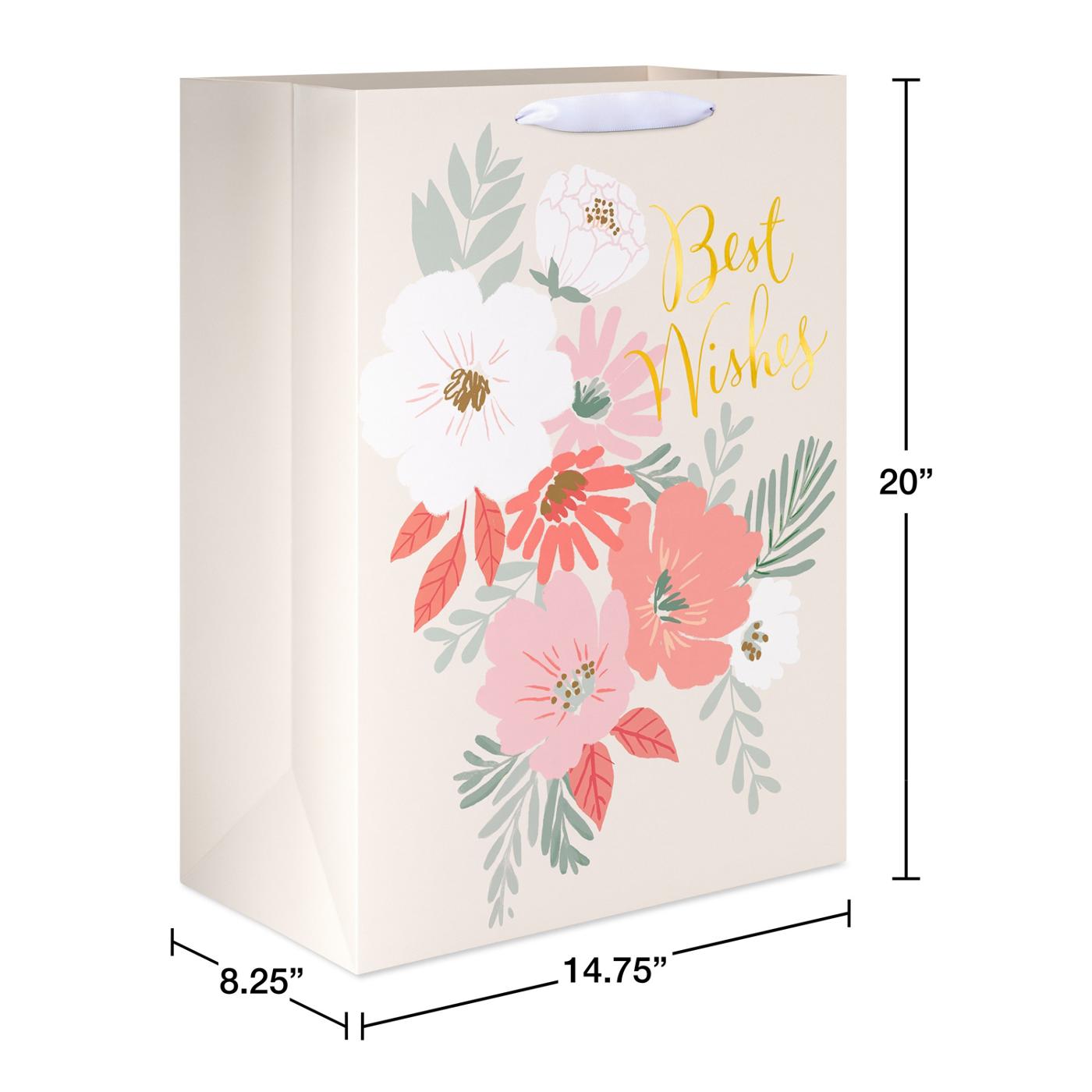 Make a memorable impression when presenting your wedding gift with our Jumbo Wedding Gift Bag. Its generous size accommodates a variety of gifts, from home goods to a collection of smaller wrapped items. Featuring a soft, pastel floral design interlaced with elegant golden 'Best Wishes' lettering, this bag not only simplifies the task of wrapping but also beautifies your gift presentation instantly. Whether you're a family member, a friend, or a colleague of the happy couple, this bag will ensure your gift stands out with grace and style. American Greetings offers exceptional greeting cards, gift wrap, and celebration products so you can connect in ways that fit your personality and authentic style.