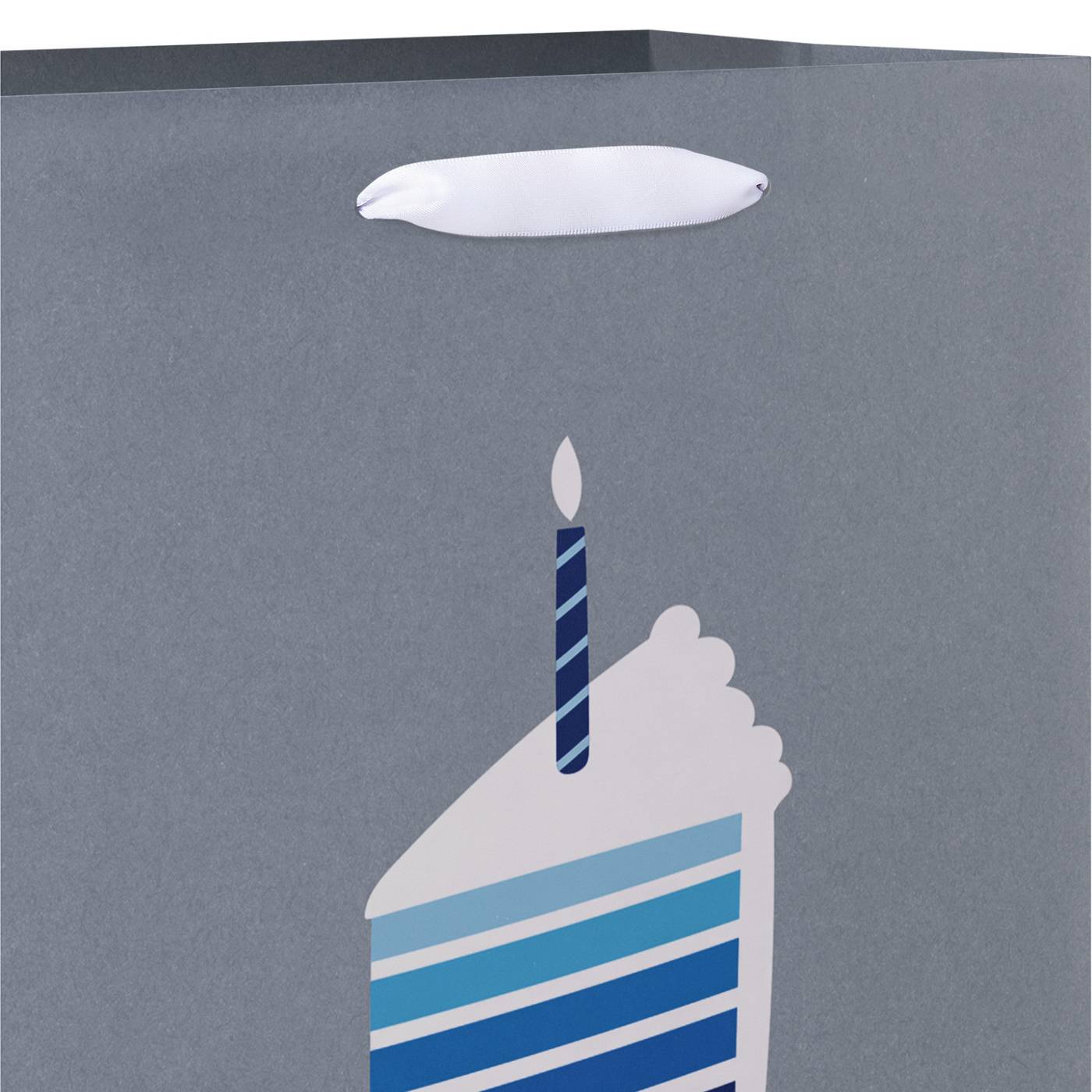 • This gift bag features a slice of cake in various shades of blue.
