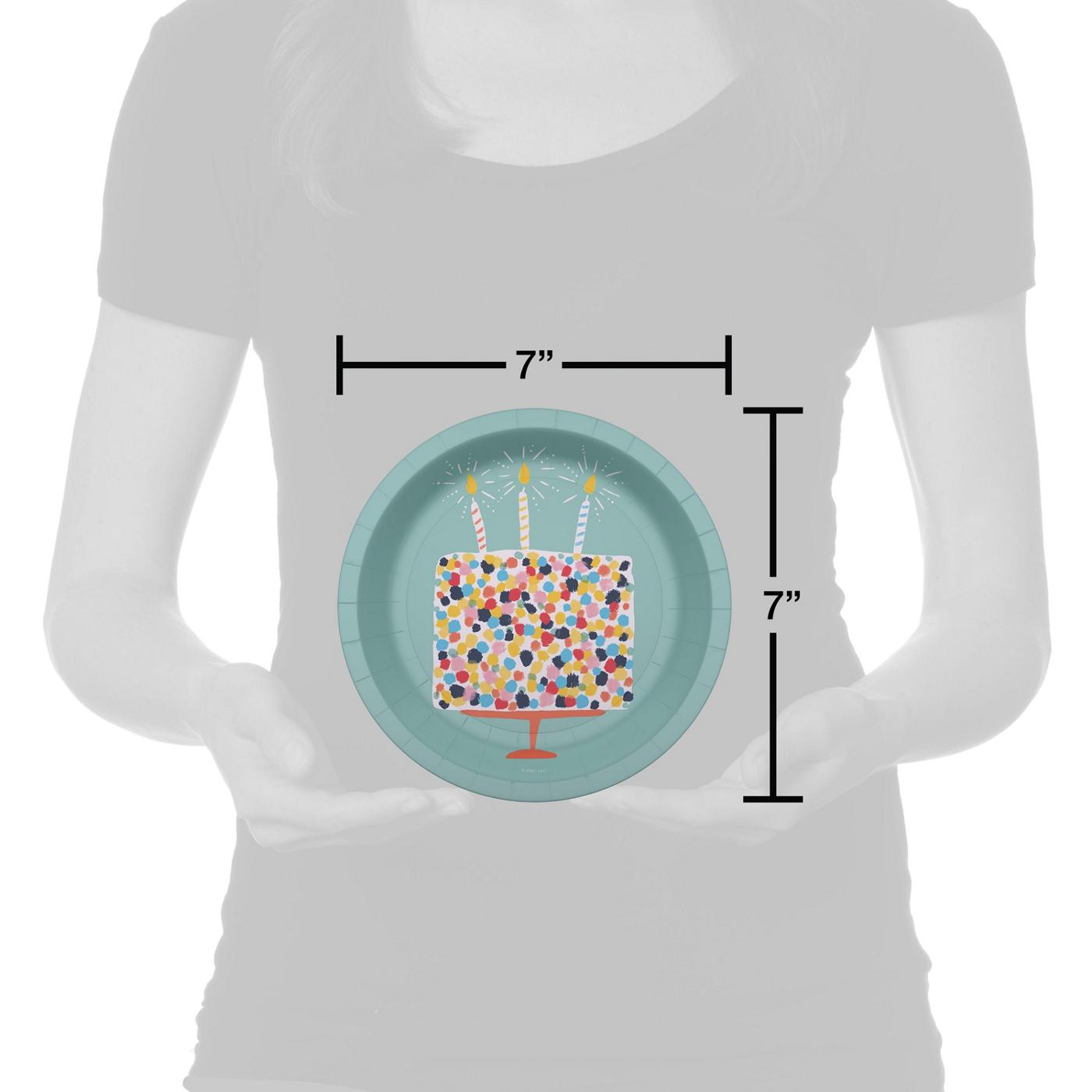 • This American Greetings round 7" birthday plate features a birthday cake covered in rainbow sprinkles with candles