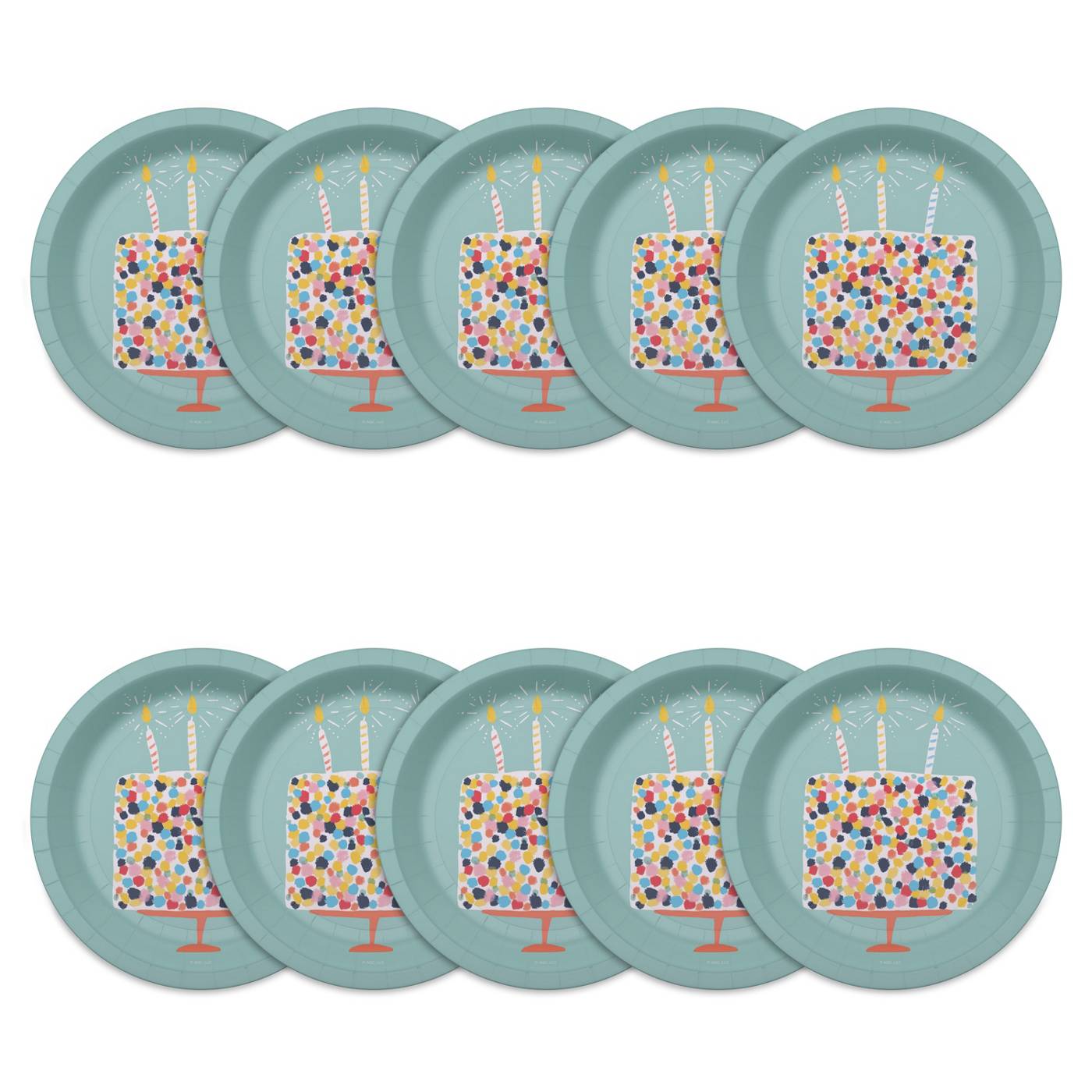 Get any birthday party off to a beautiful start with these bright and festive paper plates! Sold in a pack of 10, the art features a birthday cake covered in rainbow sprinkles. The 7-inch size makes the plates ideal for holding cake, appetizers, and other delicious birthday treats, while the colorful design with its glossy finish will appeal to kids and grown-ups alike. No matter who you’re celebrating on their special day, these cool plates will help you do it in style!