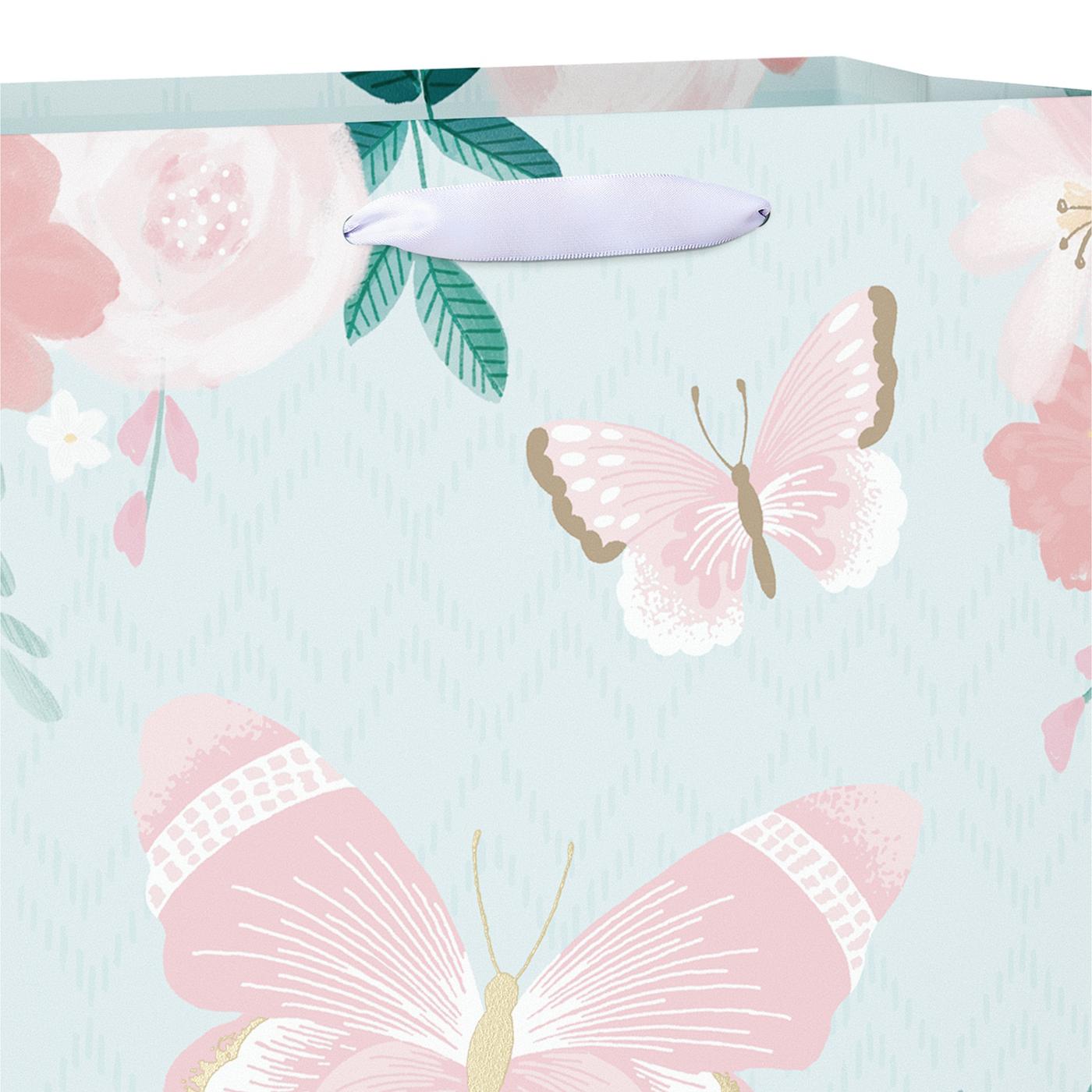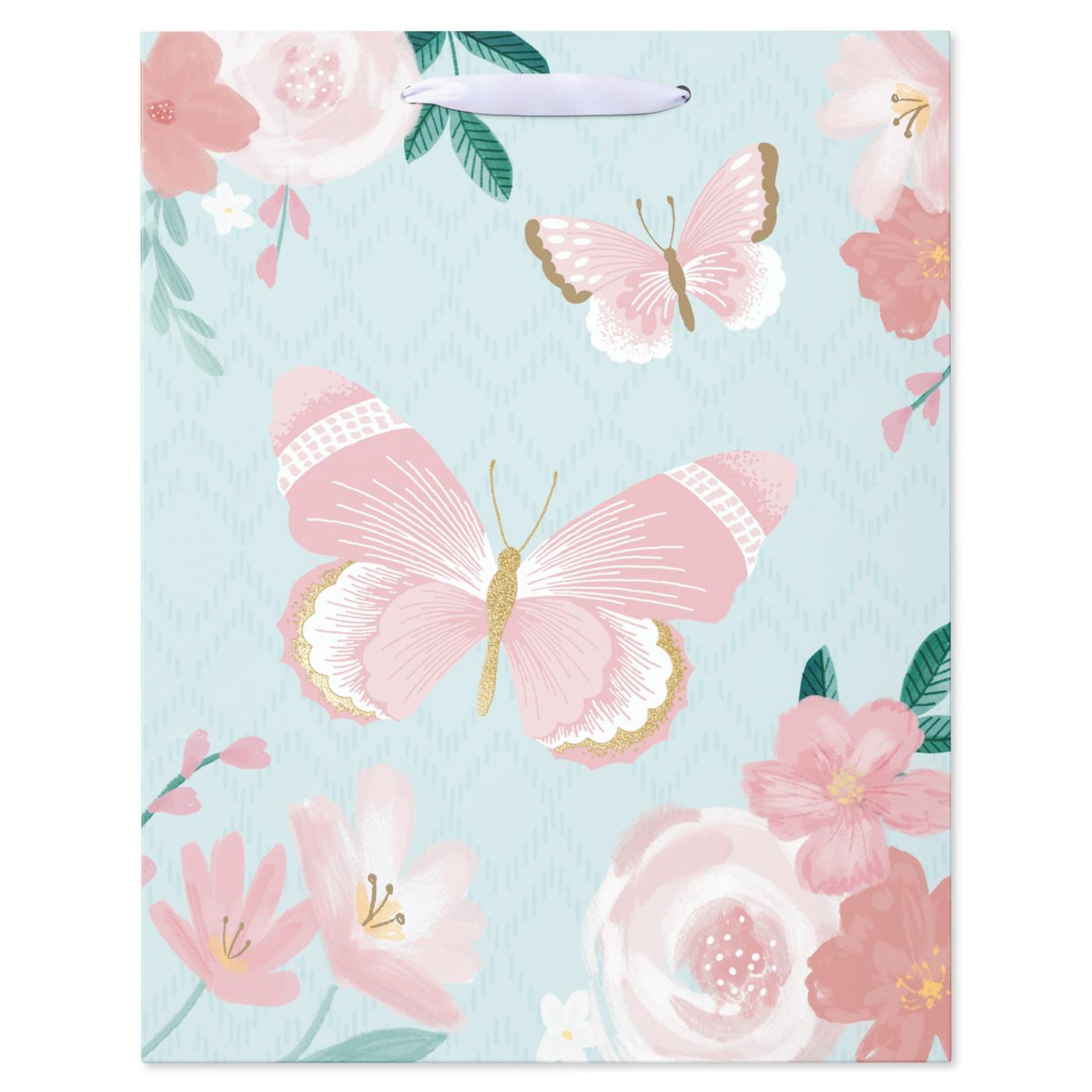 Enhance the beauty of your gift with this elegantly designed large gift bag. Its charming print features pastel flowers and butterflies, perfect for adding a personal touch to your gift-giving. Whether you're gifting for a birthday, wedding, or any special occasion, this bag will elevate your presentation and make your recipient feel treasured. Additionally, it’s crafted from environmentally friendly materials, making it a thoughtful choice for the eco-conscious shopper.