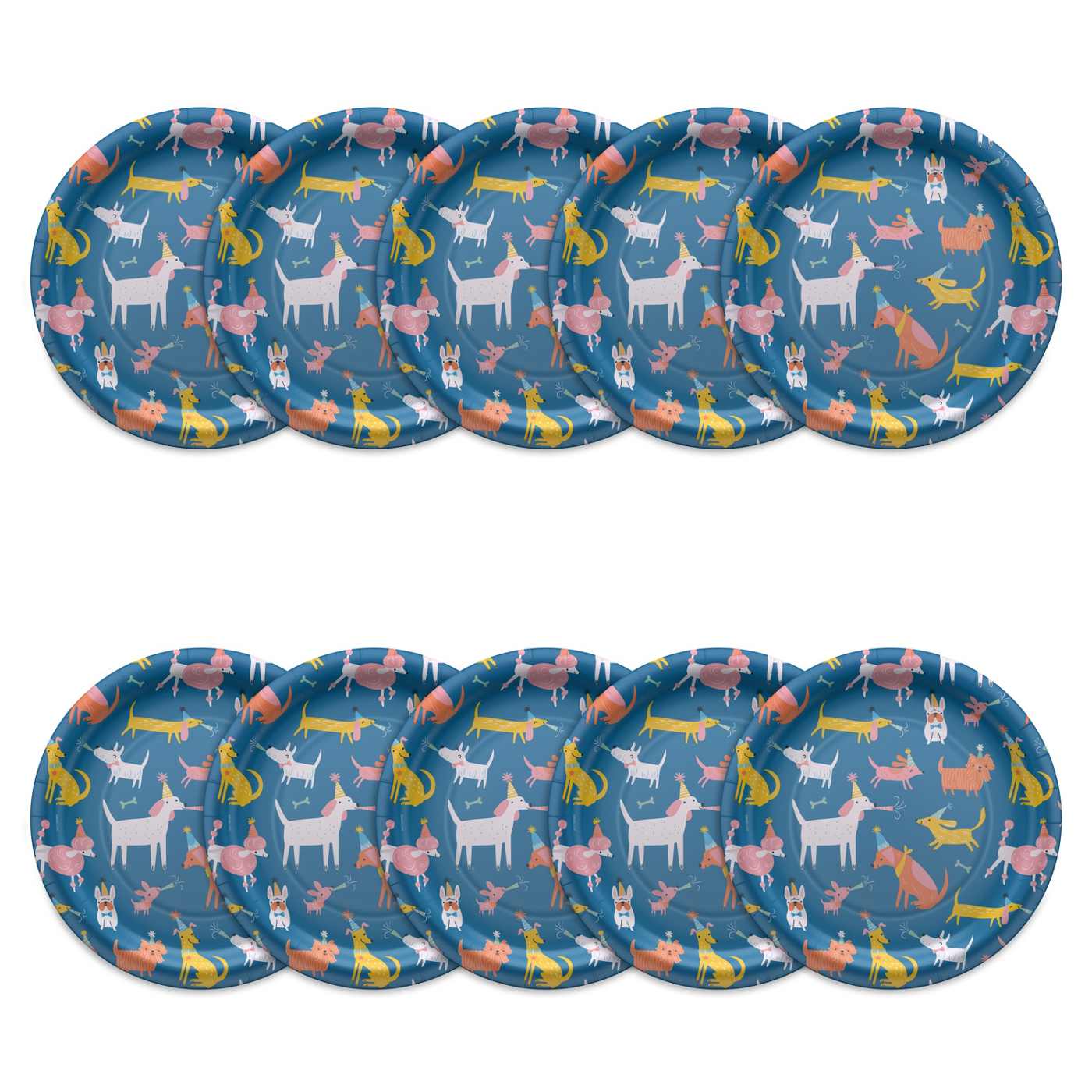 Get any birthday party off to a happy start with these doggone delightful paper plates! Sold in a pack of 10, the design features a fun pattern of dogs in different colors against a blue background. The 9-inch size makes the plates ideal for dinners and desserts, and the fun design with its bright colors and glossy finish will appeal to adults as well as kids. While they’re ideal for birthdays, these plates are also great for celebrating special occasions throughout the year!