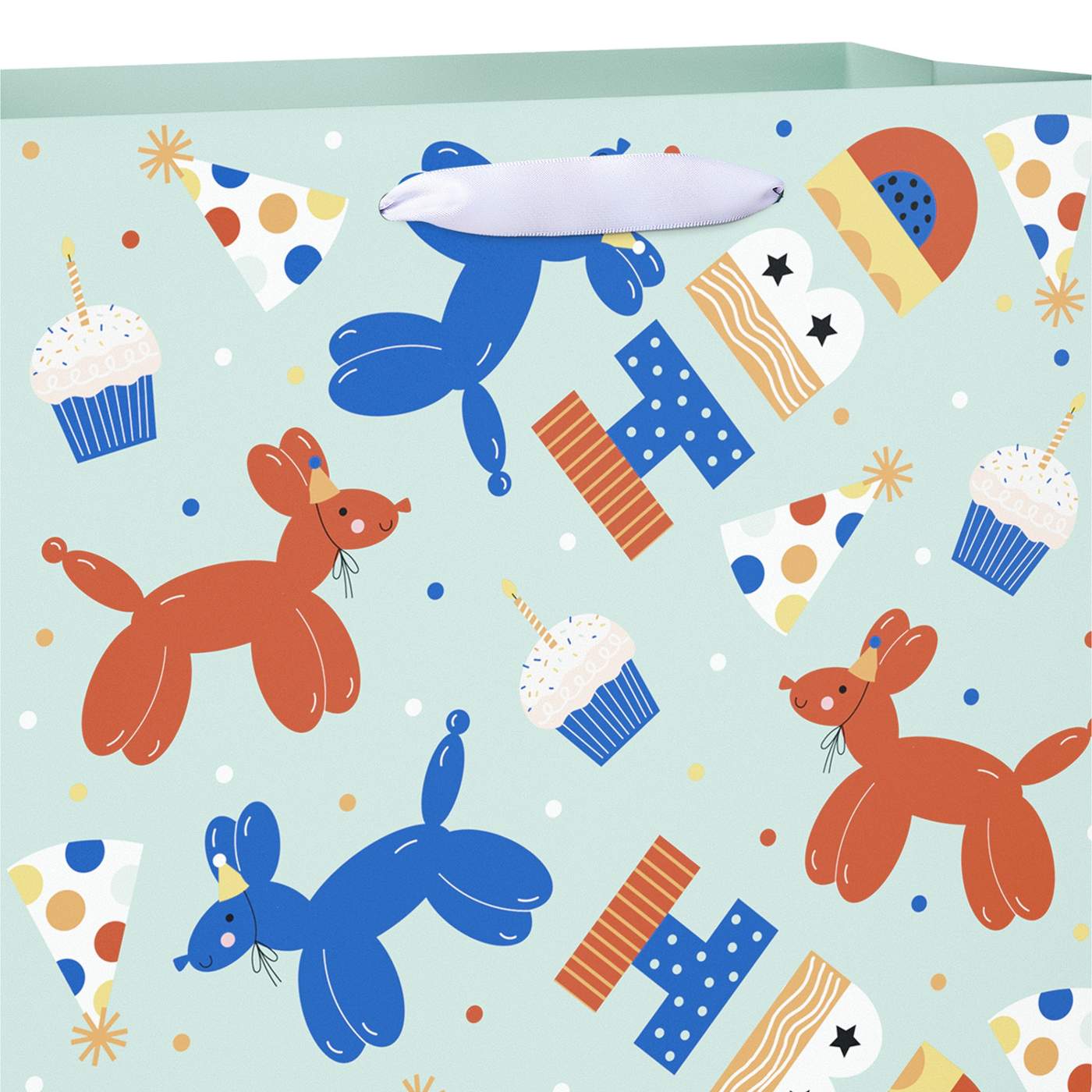 • This gift bag features fun colorful balloon animals and party motifs on a delightful sea green background perfect for that special birthday celebration!