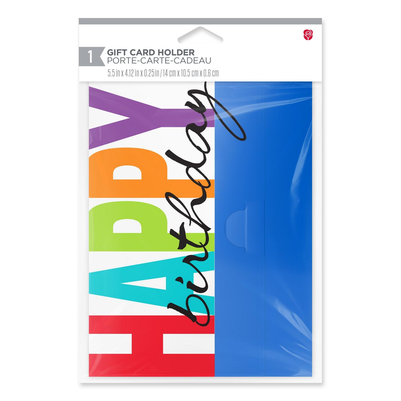 • This gift card holder features a bright and colorful design with bold 'HAPPY BIRTHDAAY' lettering