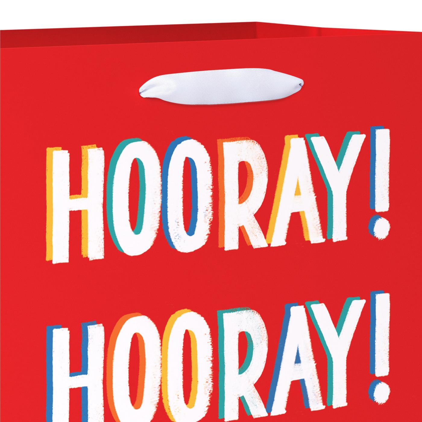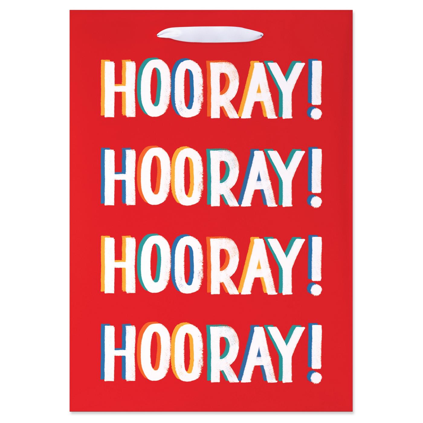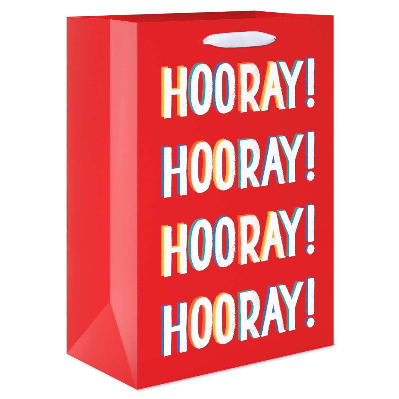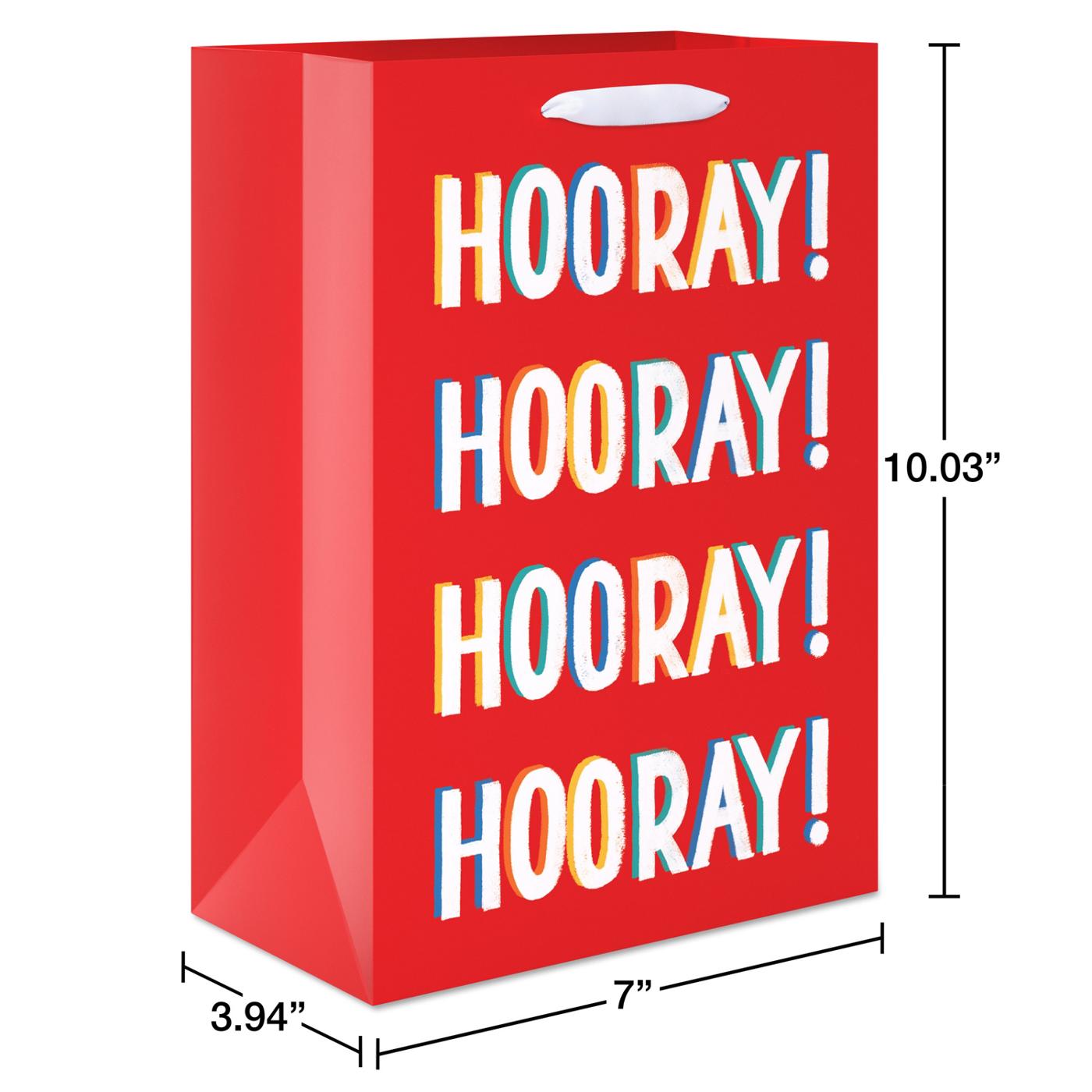 Add some extra happy to the celebration with this delightful Medium Gift Bag. Featuring the word “HOORAY” on a vibrant red background, this bag is sure to make the occasion even brighter. It’s perfect for relatives, partners, friends, co-workers, neighbors, or anyone else you want to celebrate. Medium gift bags are ideal for wrapping special gifts like clothing, home decor items, toys, stuffed animals, electronics, and other hard-to-wrap presents. Complete your gift presentation with tissue paper (sold separately) for the perfect finishing touch!
