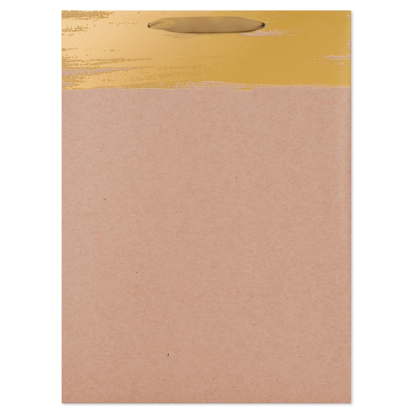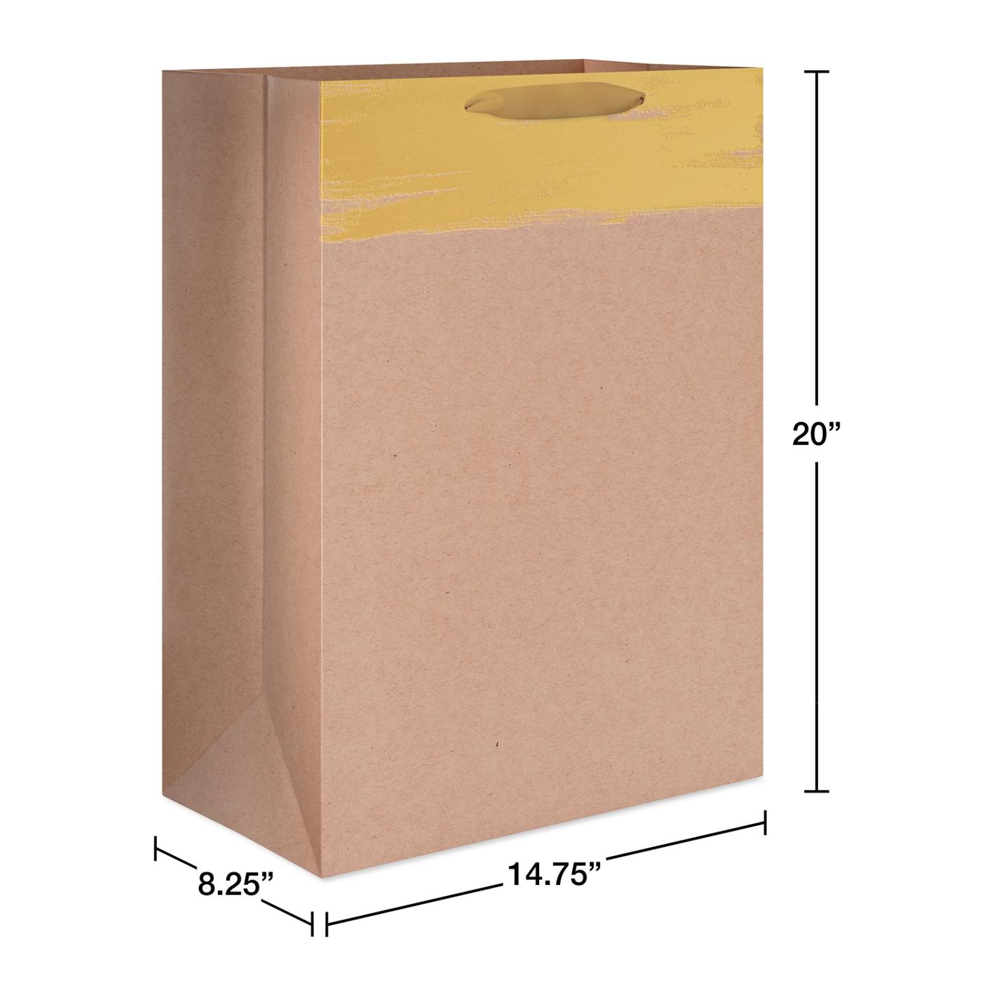 Give more than just an amazing present with this jumbo gift bag! This design features a band of gold metallic foil against a white kraft bag and a satin ribbon handle. Jumbo size is ideal for holding clothing, books, stuffed animals, electronics, and more! Top off your gift bag with coordinating tissue paper (sold separately) and you’re ready to share some smiles!