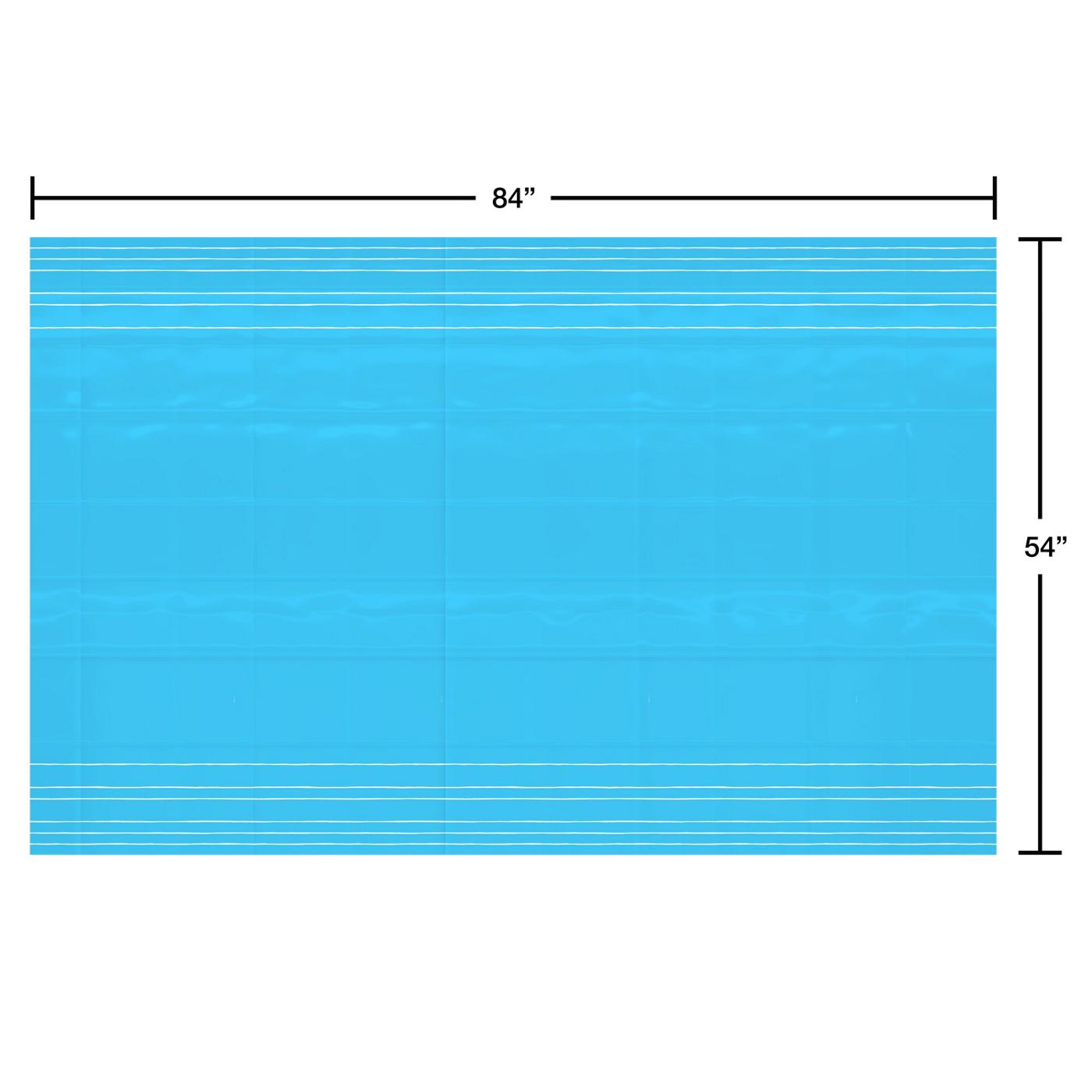 Celebrate any occasion in style with this attractive and convenient plastic table cover! Suitable for indoor or outdoor use, this large table cover measures 54” x 84” and is light blue with a decorative white striped border. Perfect for birthday parties, summer cookouts, showers, graduation, sporting events, or any special celebration you want to make extra festive! Add coordinating items such as plates, napkins, cups, and more to take your party to the next level!