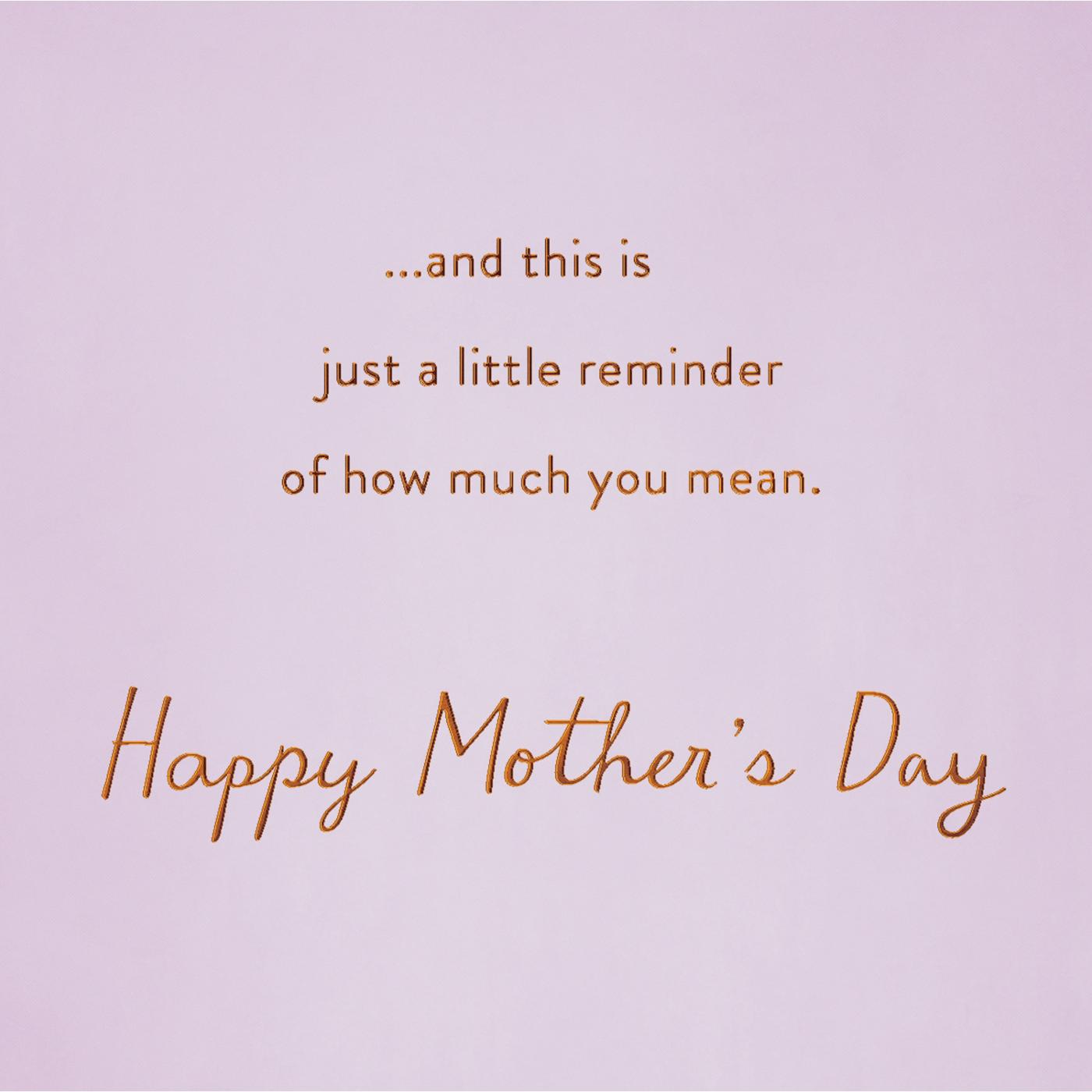 • Inside Message: …and this isjust a little reminderof how much you mean. Happy Mother’s Day You’re more specialand more lovedthan you know…