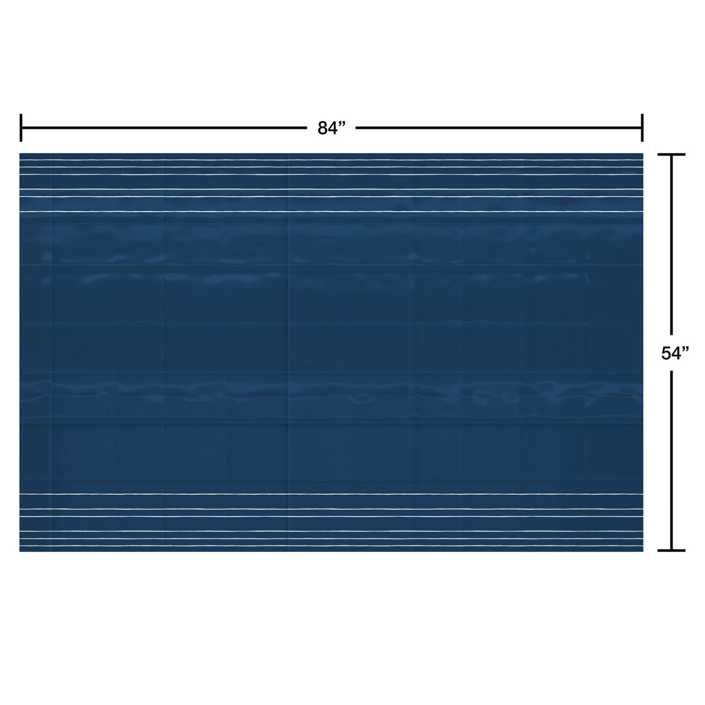 Celebrate any occasion in style with this attractive and convenient plastic table cover! Suitable for indoor or outdoor use, this large table cover measures 54” x 84” and is navy blue with a decorative white striped border. Perfect for birthday parties, summer cookouts, graduation, sporting events, or any special celebration you want to make extra festive! Add coordinating items such as plates, napkins, cups, and more to take your party to the next level!