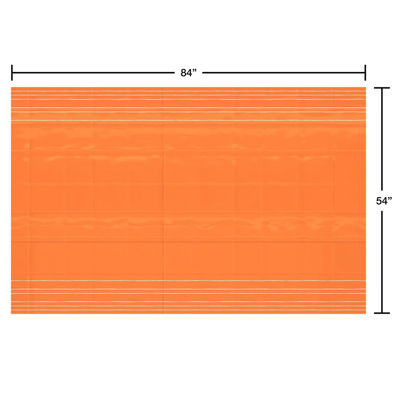 Celebrate any occasion in style with this attractive and convenient plastic table cover! Suitable for indoor or outdoor use, this large table cover measures 54” x 84” and is orange with a decorative white striped border. Perfect for birthday parties, summer cookouts, graduation, sporting events, or any special celebration you want to make extra festive! Add coordinating items such as plates, napkins, cups, and more to take your party to the next level!
