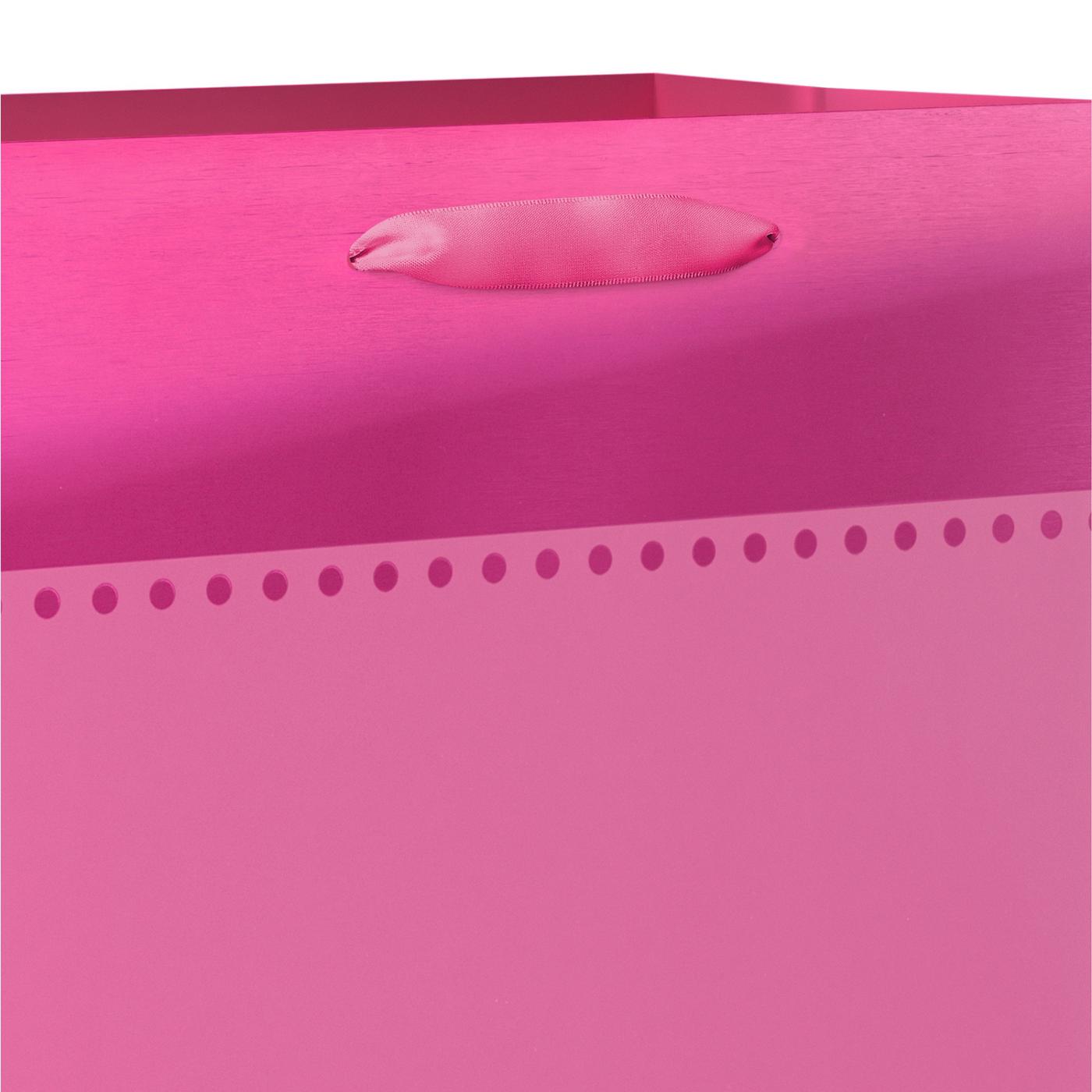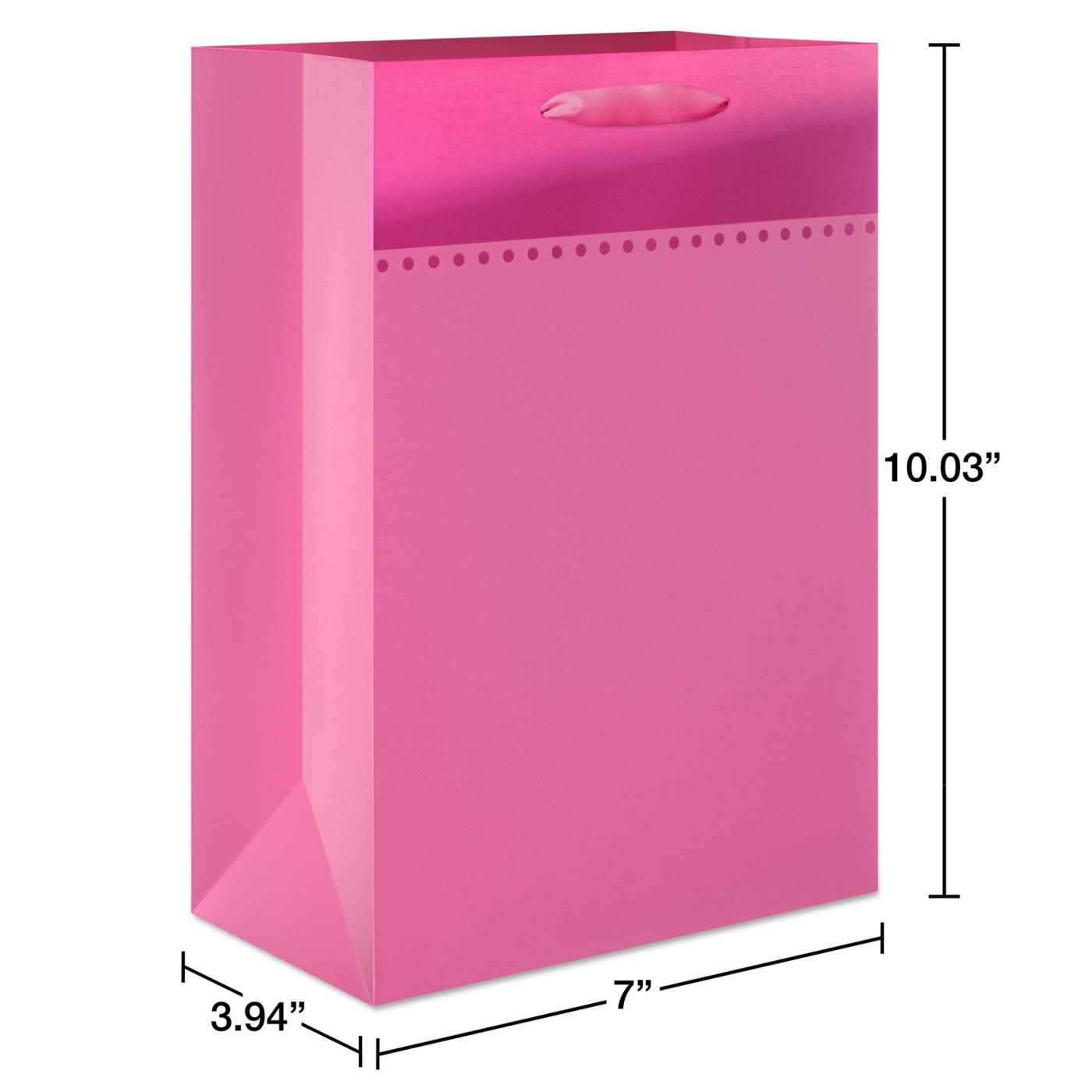 Celebrate someone special on any happy occasion with this Medium Gift Bag! This pink gift bag features a white satin ribbon handle and is enhanced with shimmering foil at the top of the bag. Perfect for many different occasions, like birthday, congrats, new home, new job, promotion, retirement party, baby shower, and more. Medium gift bags are perfect for wrapping special gifts like clothing, home decor items, toys, stuffed animals, electronics, and other hard-to-wrap presents. Top off the gift bag with coordinating tissue paper (sold separately) to complete your perfect package!