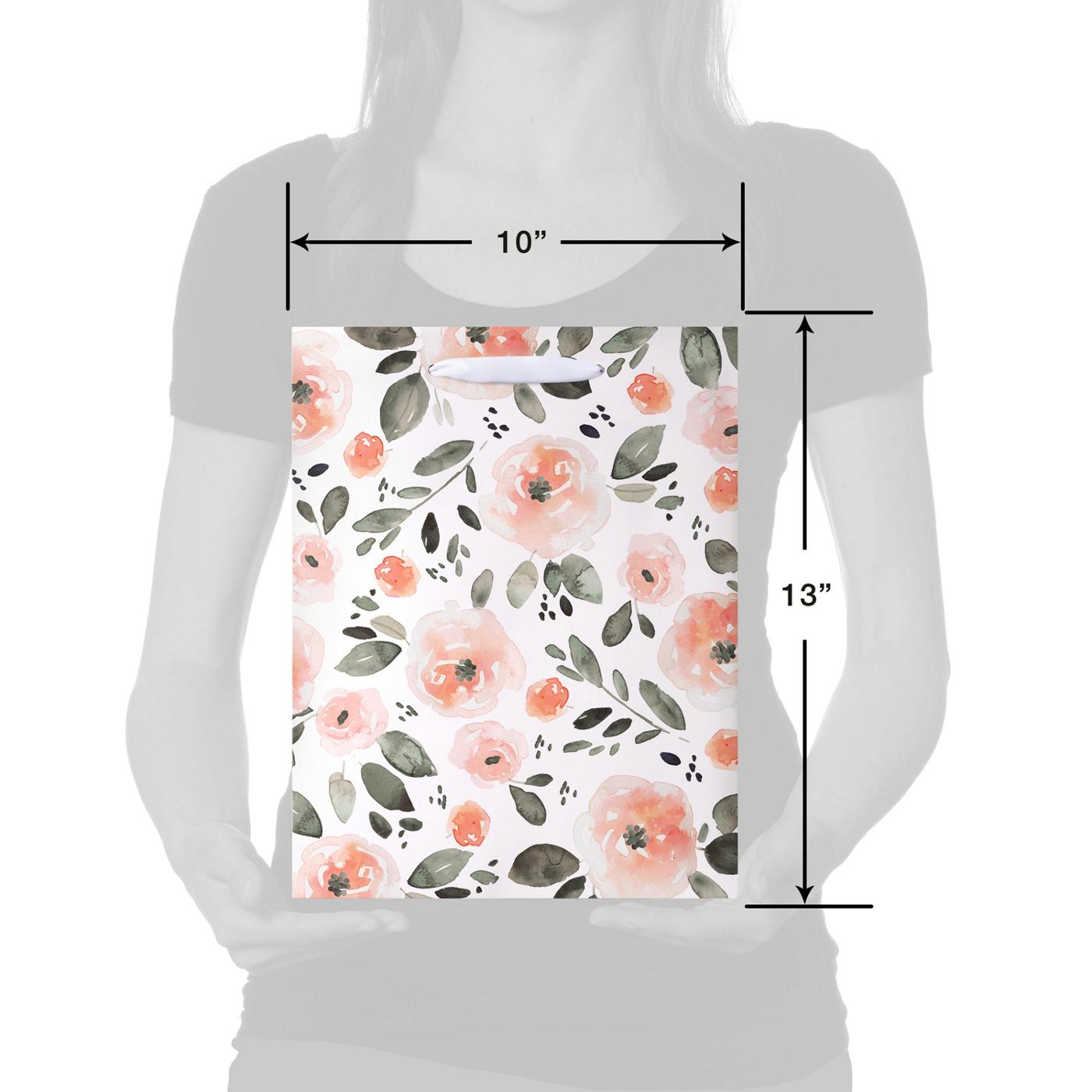 Wrap up your gift for the newlyweds in style and sophistication with this Large Wedding Gift Bag! The design features a lovely floral watercolor pattern in soft pinks and greens on white. Perfect for any wedding or similar occasions year-round, and sure to bring a smile to the happy couple’s faces! This large square gift bag is ideal for holding clothing, books, electronics, or any hard-to-wrap gift! Complete your gift presentation with tissue paper (sold separately) for the perfect finishing touch!