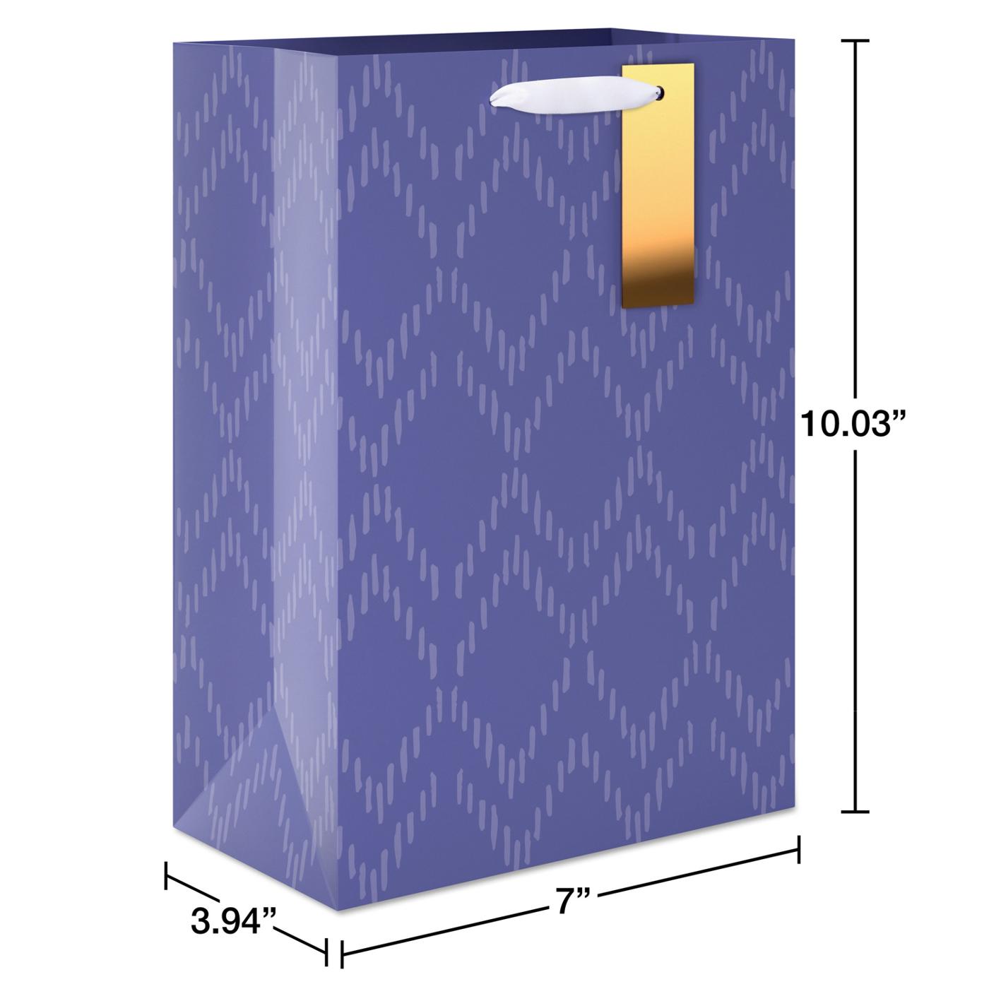 Make your present stand out with this bold and beautiful gift bag! It features a purple chevron design and includes satin ribbon handles as well as a gift tag. The medium bag is ideal for gifting lots of items including books, clothes, toys, or small electronics. Pair with coordinating tissue paper and ribbon (sold separately) to complete the festive look.