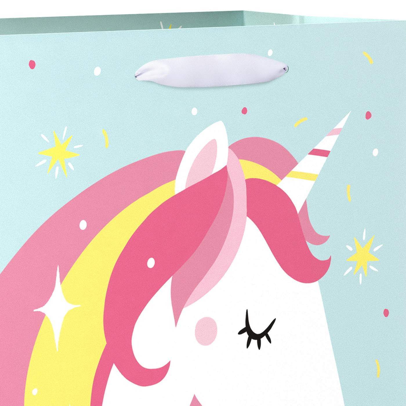 Delight any young girl or unicorn enthusiast with this whimsical gift bag. The charming design features a serene unicorn amidst a backdrop of twinkling stars and vibrant colors, ensuring your gift stands out at any party or event. Constructed from strong materials to hold various types of gifts securely. Whether wrapping a birthday, holiday, or just-because gift, this bag adds a touch of magic to your thoughtful present.