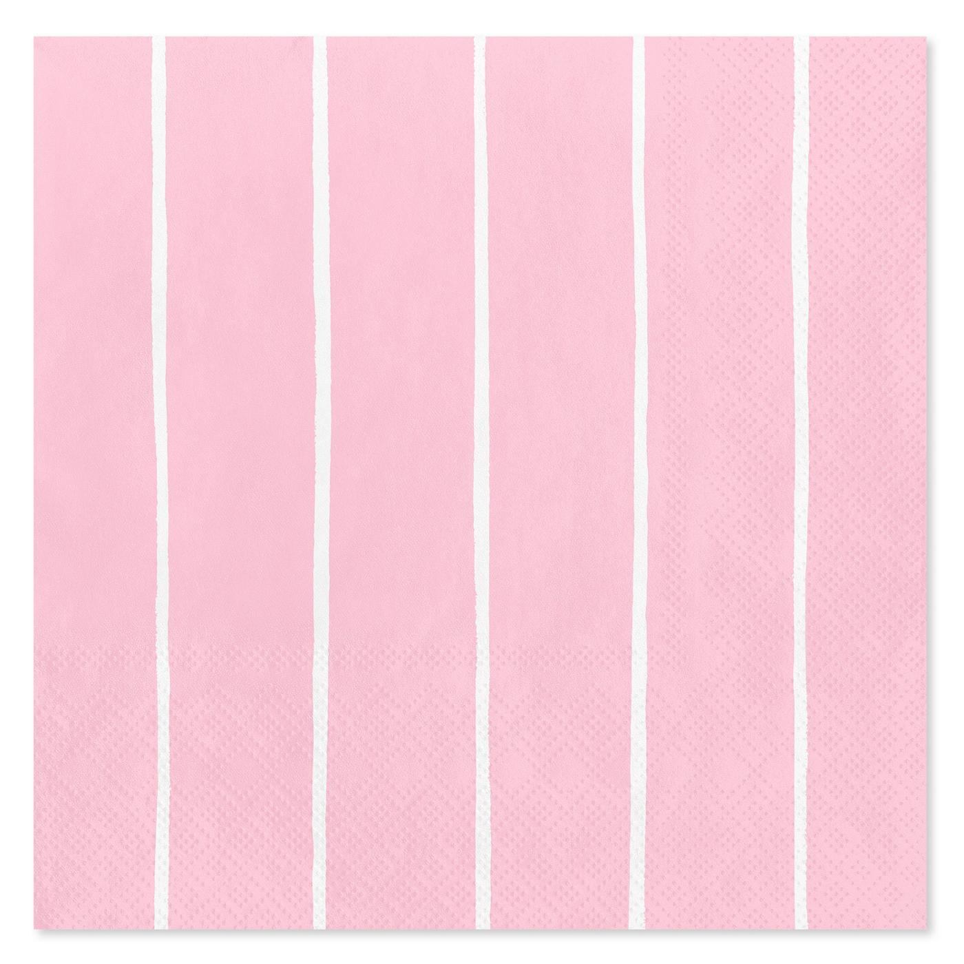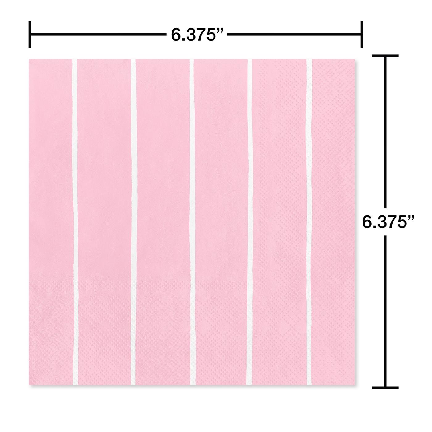 • Lunch napkins are 2-ply and white vertical lines on a light pink background.