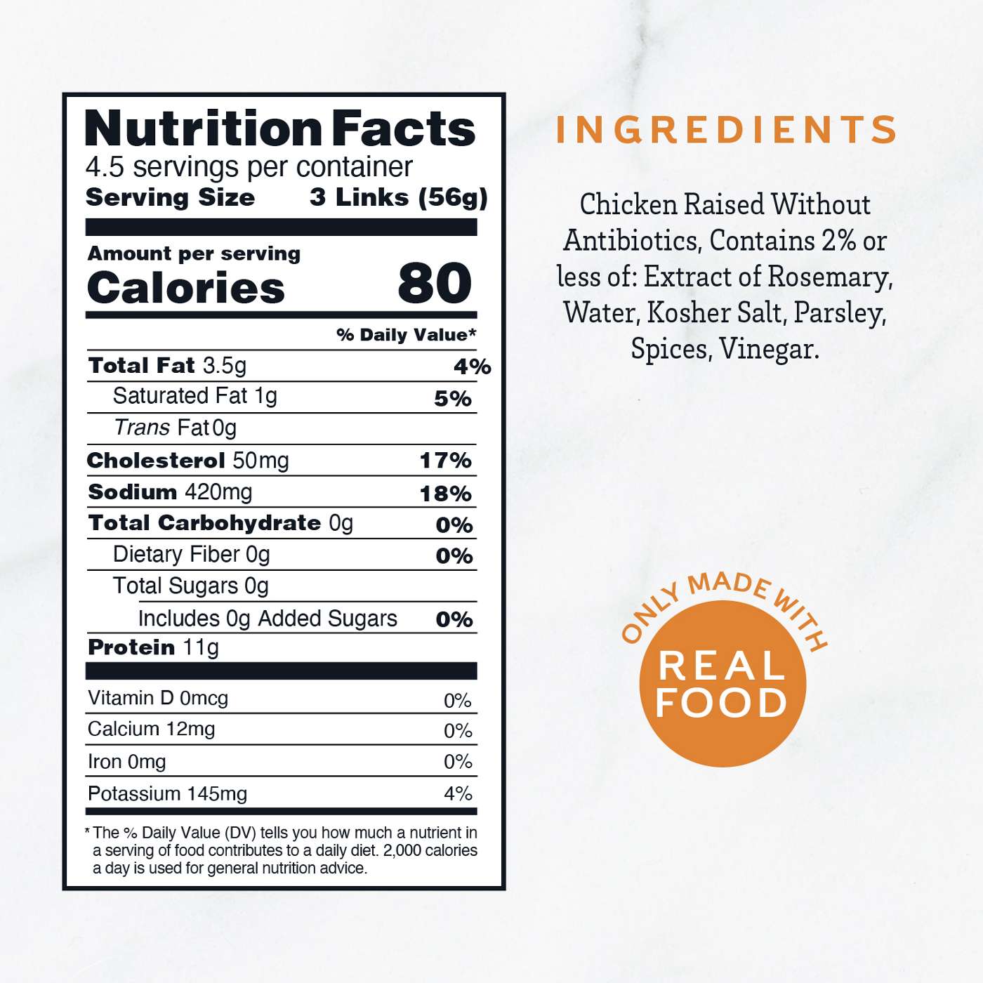 Serving Size3.00 links- Amount Per ServingCalories80