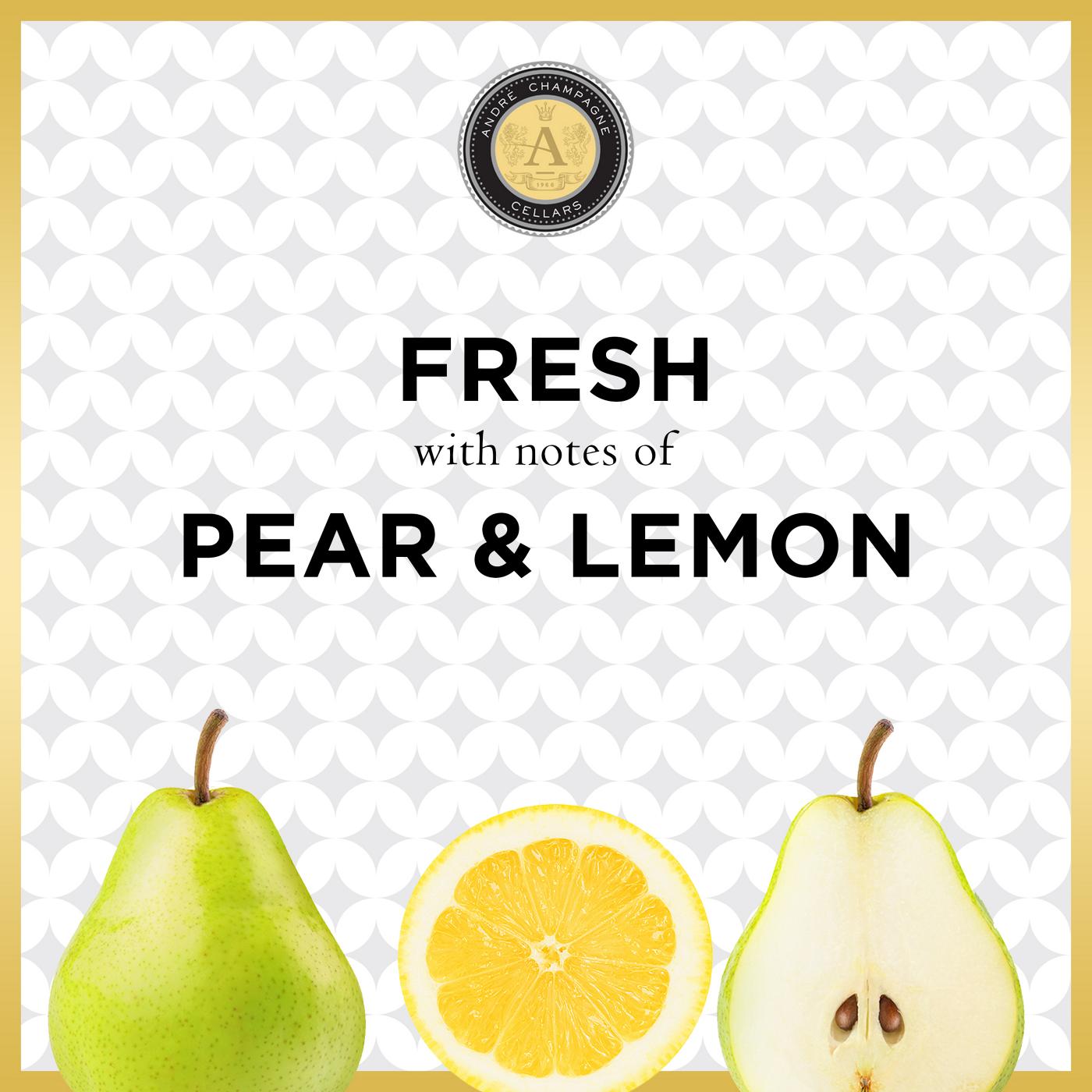 André Brut Champagne is crisp, simple and just a smidge sweet. Made from a blend of white grapes from California, it has refreshing notes of pear and lemon. This bubbly sparkling wine is best served chilled and is a welcome sight at any brunch or special celebration.
