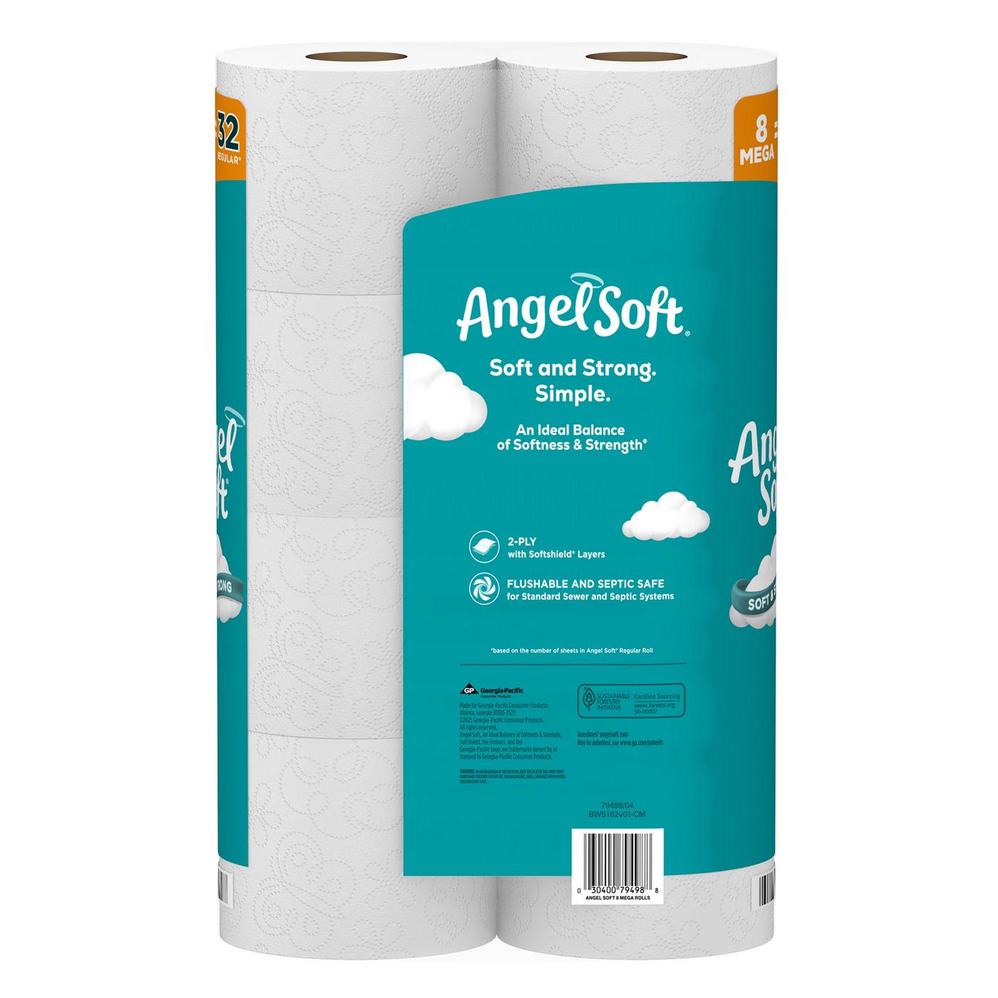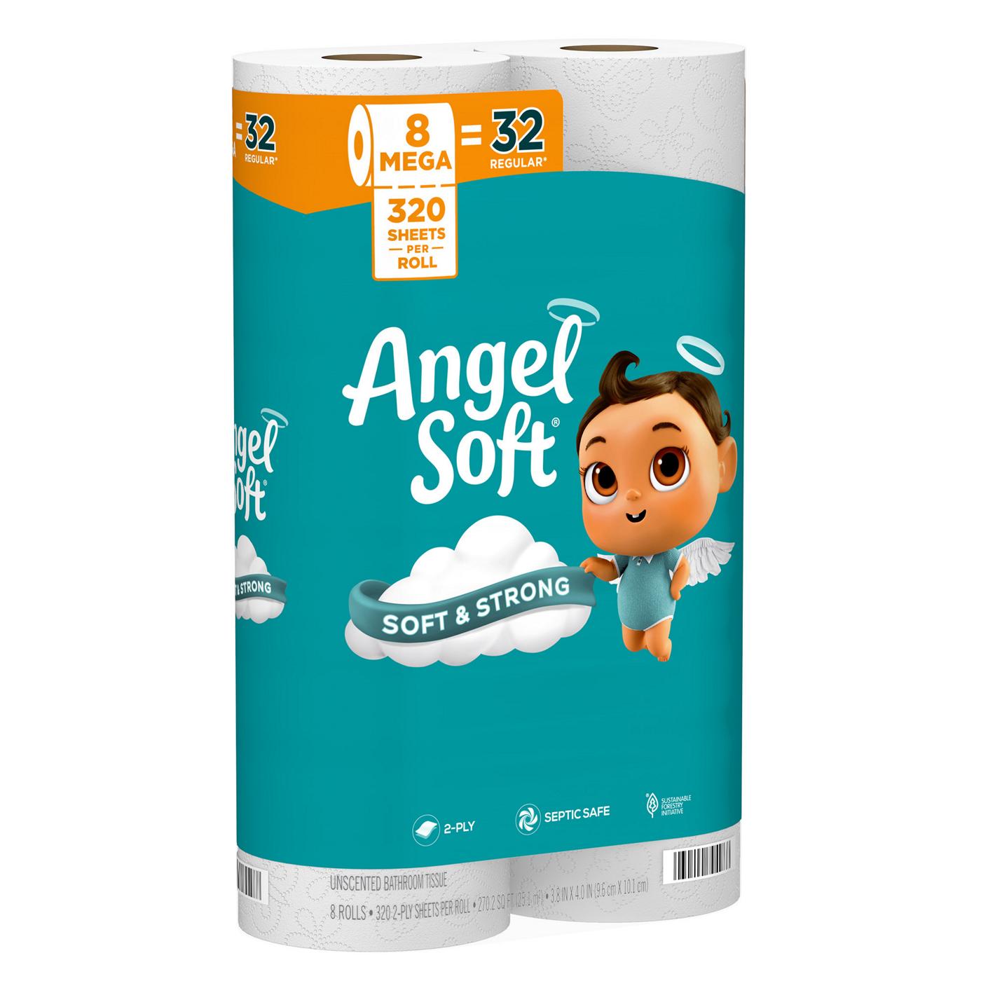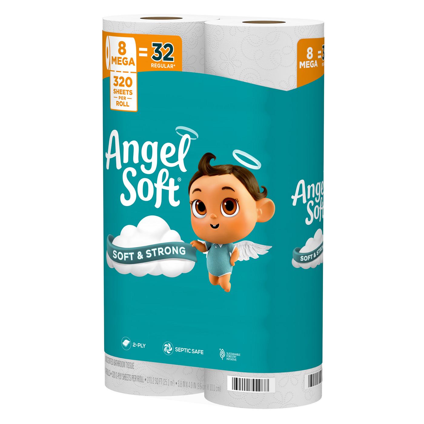 Angel Soft Mega Rolls are designed to last you longer, with rolls that are 4 times as big as our regular rolls. Plus, with 320 2-ply sheets on every Mega Roll, you’ll always have plenty of the softness and strength you love on hand. And like all your favorite Angel Soft products, our Mega Toilet Paper Rolls are flushable and septic safe in well-maintained sewer and septic systems. Angel Soft Toilet Paper. Soft and Strong. Simple.