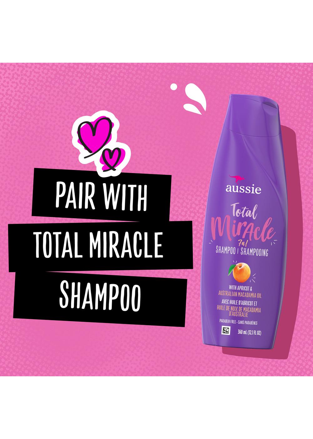 Condition and nourish your hair with Aussie Total Miracle Conditioner. Formulated with apricot and Australian macadamia oil, this product helps to detangle and smooth strands after washing. It works to leave hair feeling soft and manageable with a visibly healthy appearance.• Multi-benefit conditioner that softens and smooths• Infused with apricot and Australian macadamia oil• Helps to detangle and improve manageability• Rinses clean, leaving hair with a silky finish
